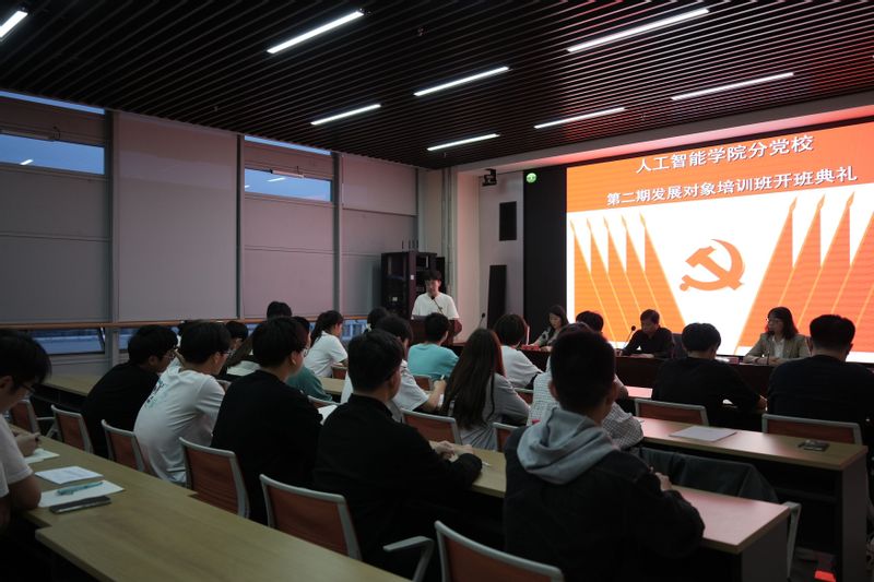 为提高党员发展对象的政治理论水平和党性修养,确保党员发展质量,落实“三全六专”育人实践。5月4日晚,人工智能学院在新区图文中心612举行第二期发展对象培训班开班典礼,学院党委书记任家钱,党委副书记李文江、本期培训班班主任张璐和全体培训班学员出席。开班仪式由李文江主持。