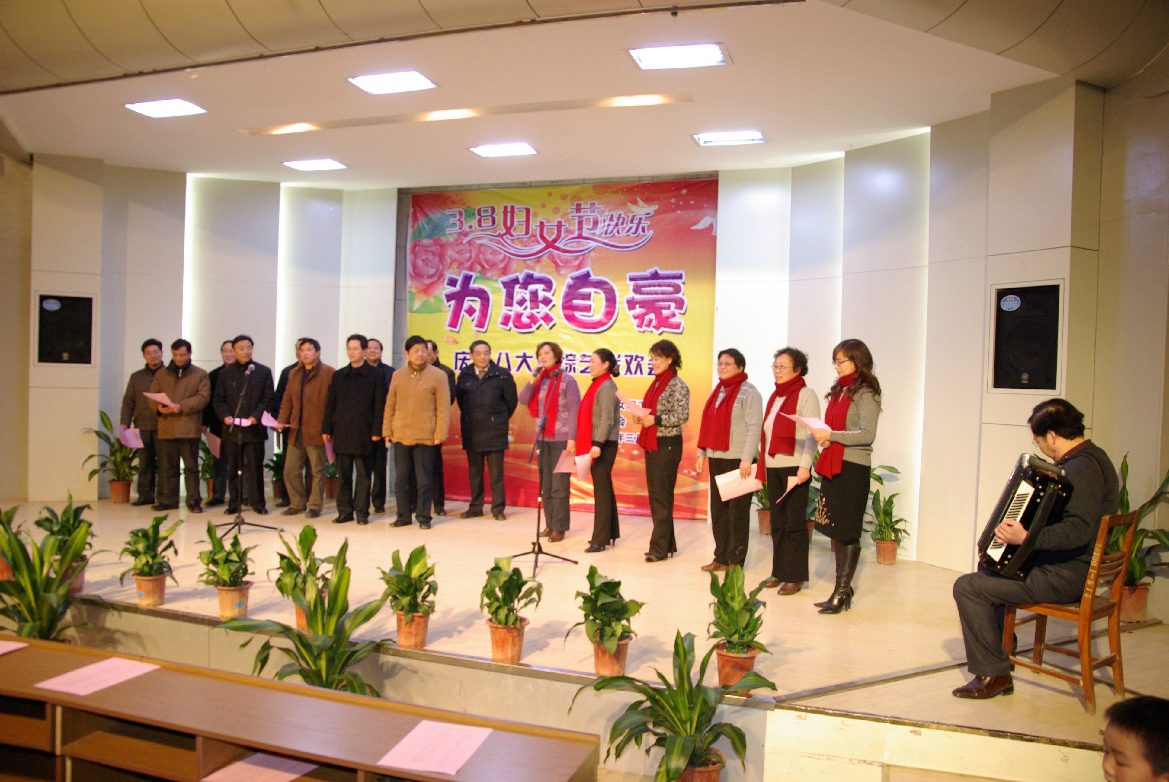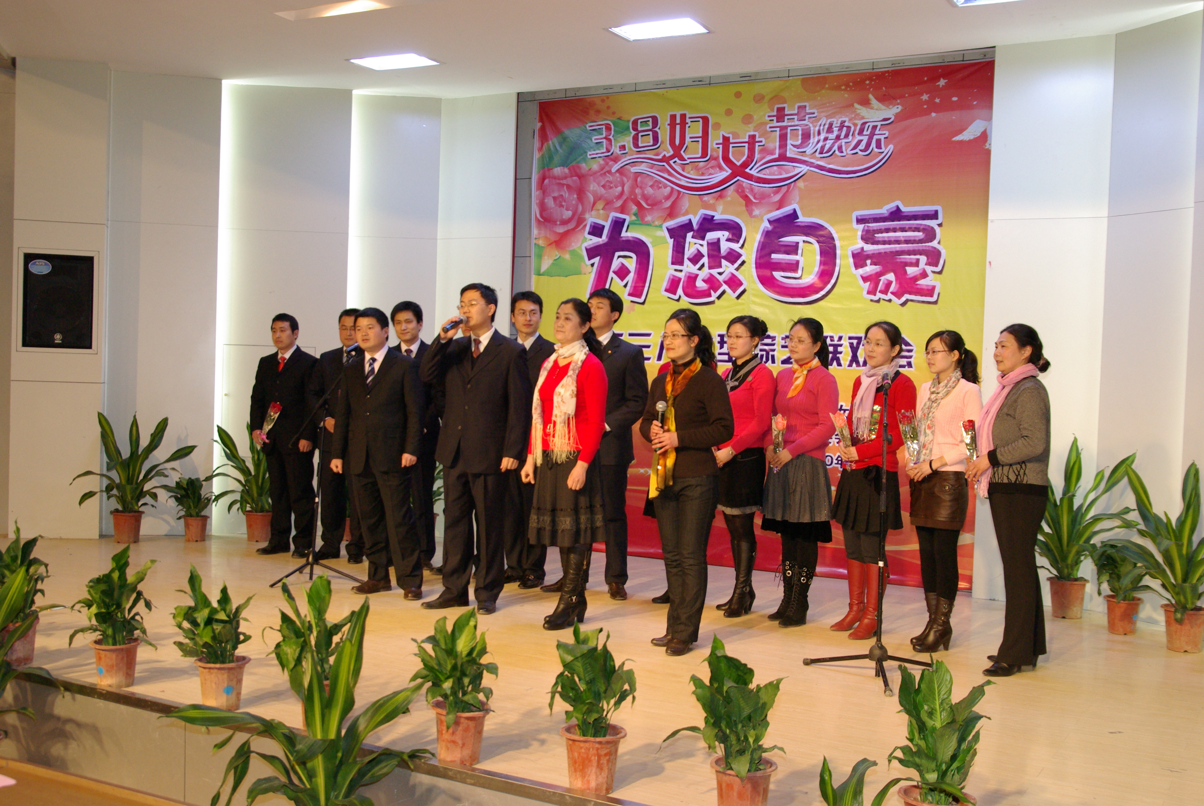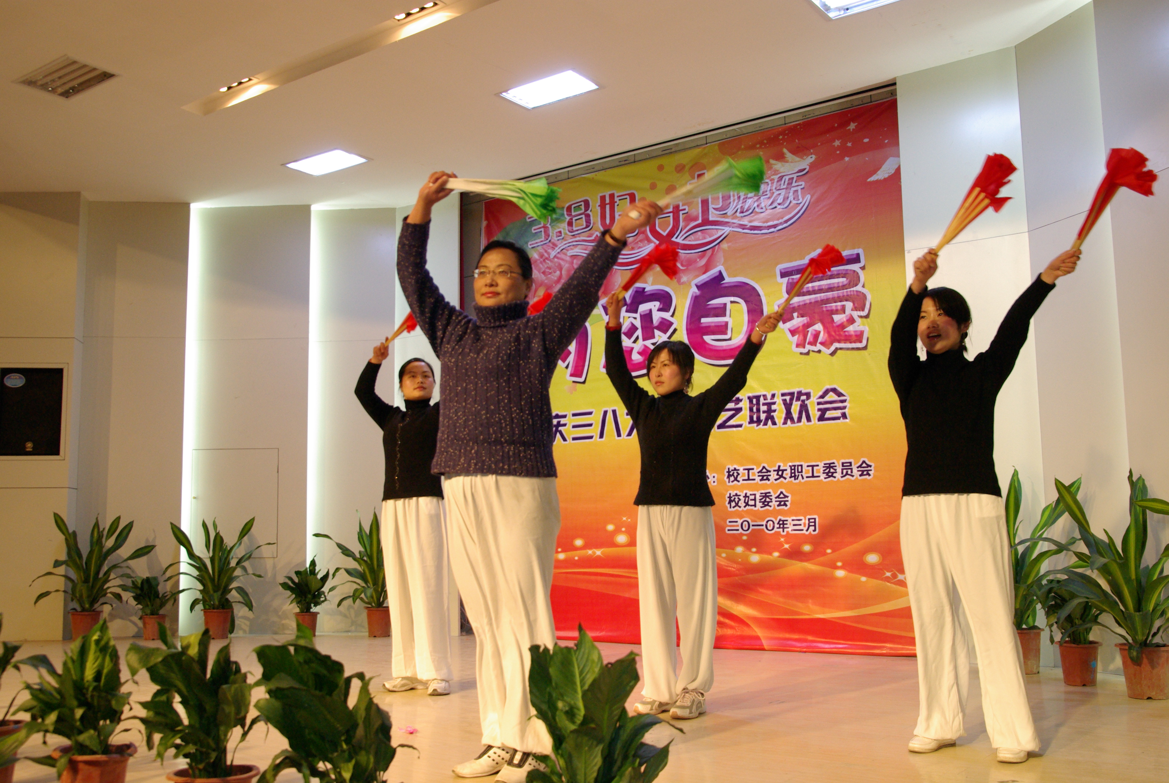 今年是最为有意义的一个“三八”妇女节,适逢国际妇女运动100周年,又是学校更名成功以后的第一个“三八”妇女节。在各总支的高度重视和精心策划下,各分会在短时间内均组织了高质量的节目,演出异彩纷呈美不胜收。展示风采、追求快乐是本次联欢会的主题,美丽的女工委、妇委会委员们开场秧歌《大中国》中拉开了联欢活动的帷幕,舞动的红绸不仅表达出大中国的豪迈,更舞出了更名成功后的喜悦;纺服系的原创小品《一堂服装表演课》,生动诙谐地再现了更名大学的努力和付出,赢得了满堂的喝彩;机械系三位女硕士和博士动感十足的表演唱《不想长大》,热情奔放不失婀娜;后勤总支酷步飞扬的《芳动校园》为观众呈现了一道亮丽的风景线;外语系的对口小段《去年今年和明年》和人文系的相声《谁叫你优秀》令人忍俊不禁;电气系的木兰扇飒爽英姿,教辅总支的歌舞《半城山半城水》则如春风拂面;数理系的男女生小合唱《明天会更好》唱出了对建设现代大学的美好祝愿;计算机系则通过独特的方言诗朗诵《我与春天有个约会》展现了来自五湖四海的青年教师融入学校大家庭后的幸福和希望;生化系表演唱《感恩的心》深情而温暖,机关总支的《幸福拍手歌》则热情而欢快;艺术设计系独唱《母亲》,管理系的《星语星愿》和机电学院的联唱则为女教工们送上了一份特殊的节日祝福;16位党总支书记的倾情献歌将活动气氛推向了高潮;联欢会上两位主持人的机智串联让联欢会更显温暖和欢乐。此次活动,不仅成为全校女性的节日,而且成为了所有学校人的节日。