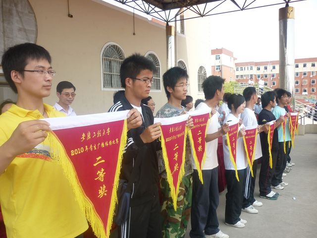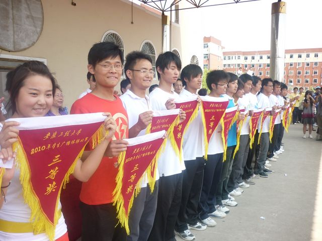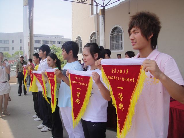 上午十一点半,比赛圆满结束,经过体育学院老师公平公正的评分,总裁判长颜小燕宣读了比赛结果:英语091、国贸091、通信091、服工2091、英语2091、营销2094共六支代表队获得一等奖,营销092、社工092、国贸092、化工092、营销091、自动化092、化工2092、车辆2092、工管2092、化工2091、纺织2092共十二支代表队获得二等奖,纺织091、自动化093、应化091、生工092、装潢091、工设(工)091、计算机091、装潢092、电科091、环工091、给排水091、工设(工)092、电信2091、机械2092、自动化2092、英语2093、车辆2091、营销2093、计科2091共十九支代表队获得三等奖。