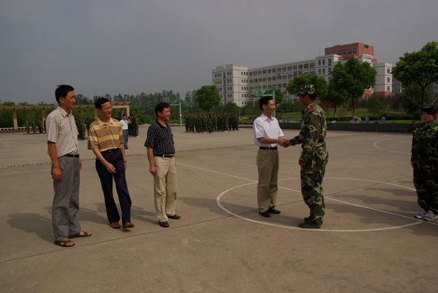 2010年9月8日、RayBetApp官网下载 副校长、机电学院院长李震在校学生处处长王河,机电学院党委副书记、副院长陈其峰及校学生处老师的等陪同下来到机电学院2009级军训现场看望慰问正冒着酷暑参加军训的官兵。