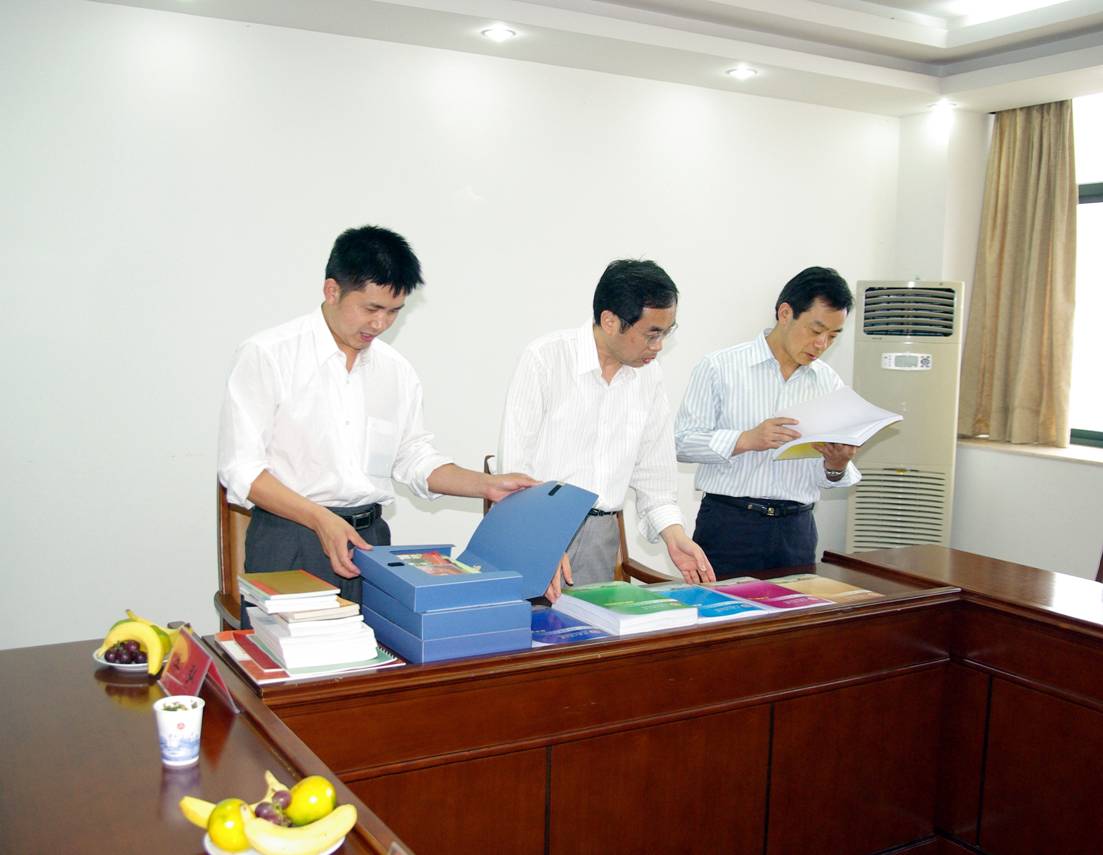 检查组认真审阅我校申报省文明单位的支撑材料