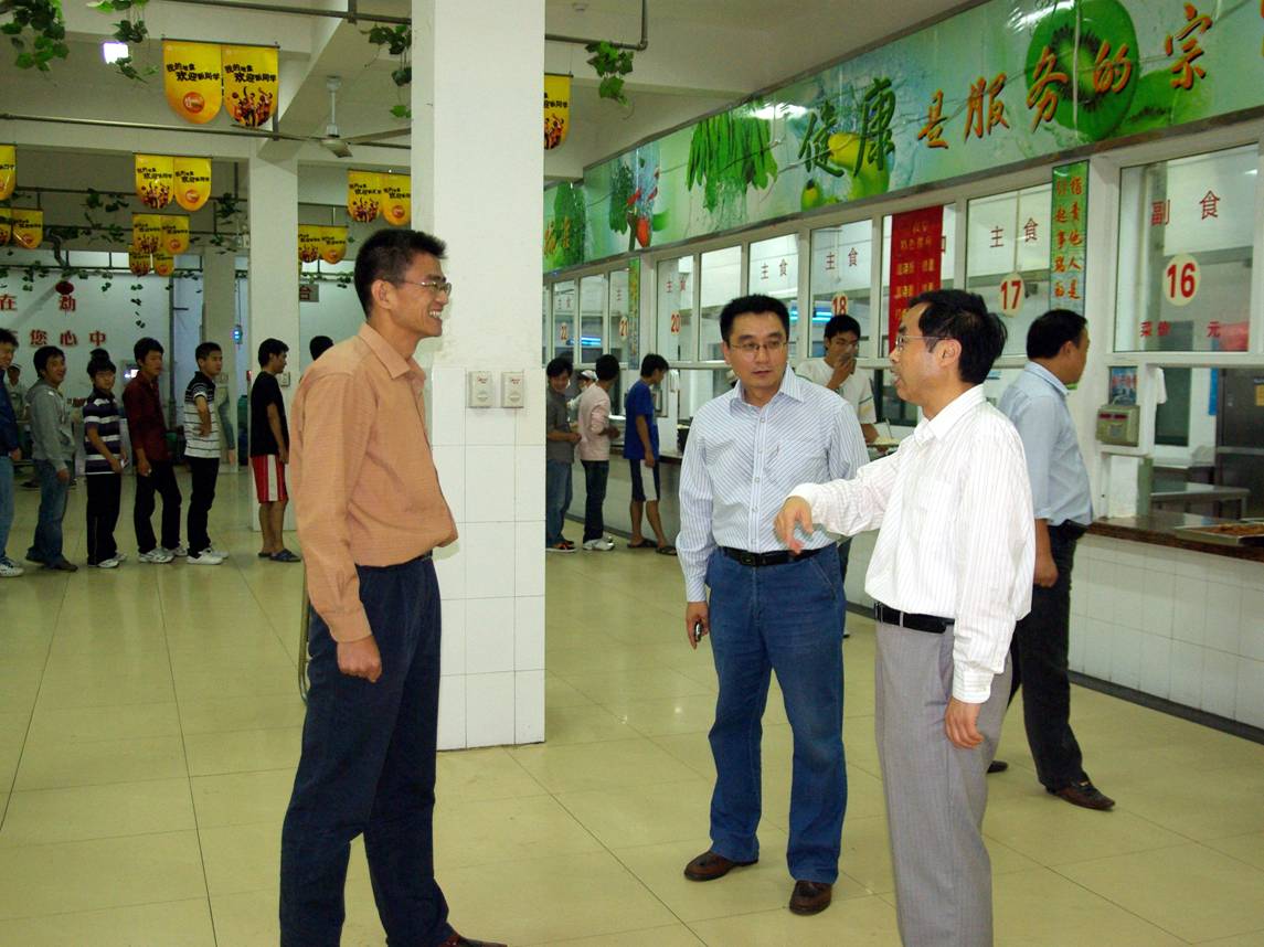 在食堂与后勤集团负责同志进行交流
