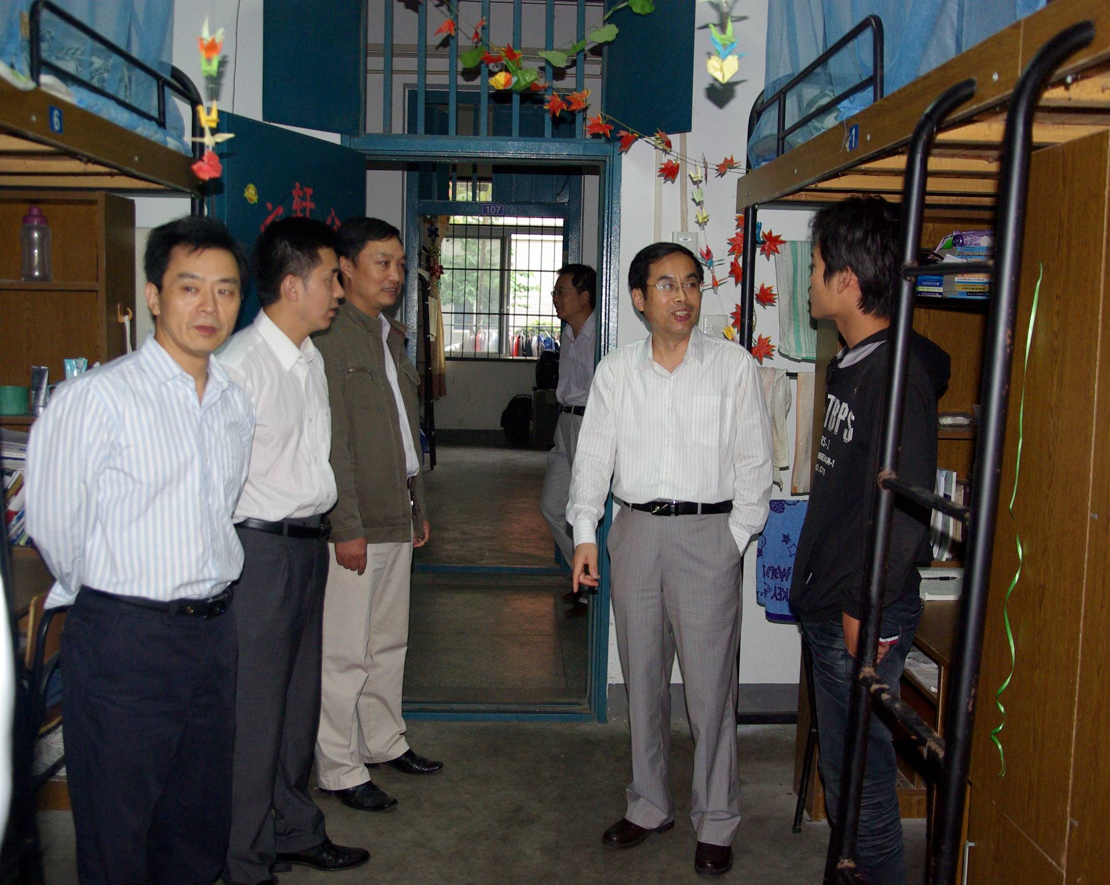 在寝室与学生交谈