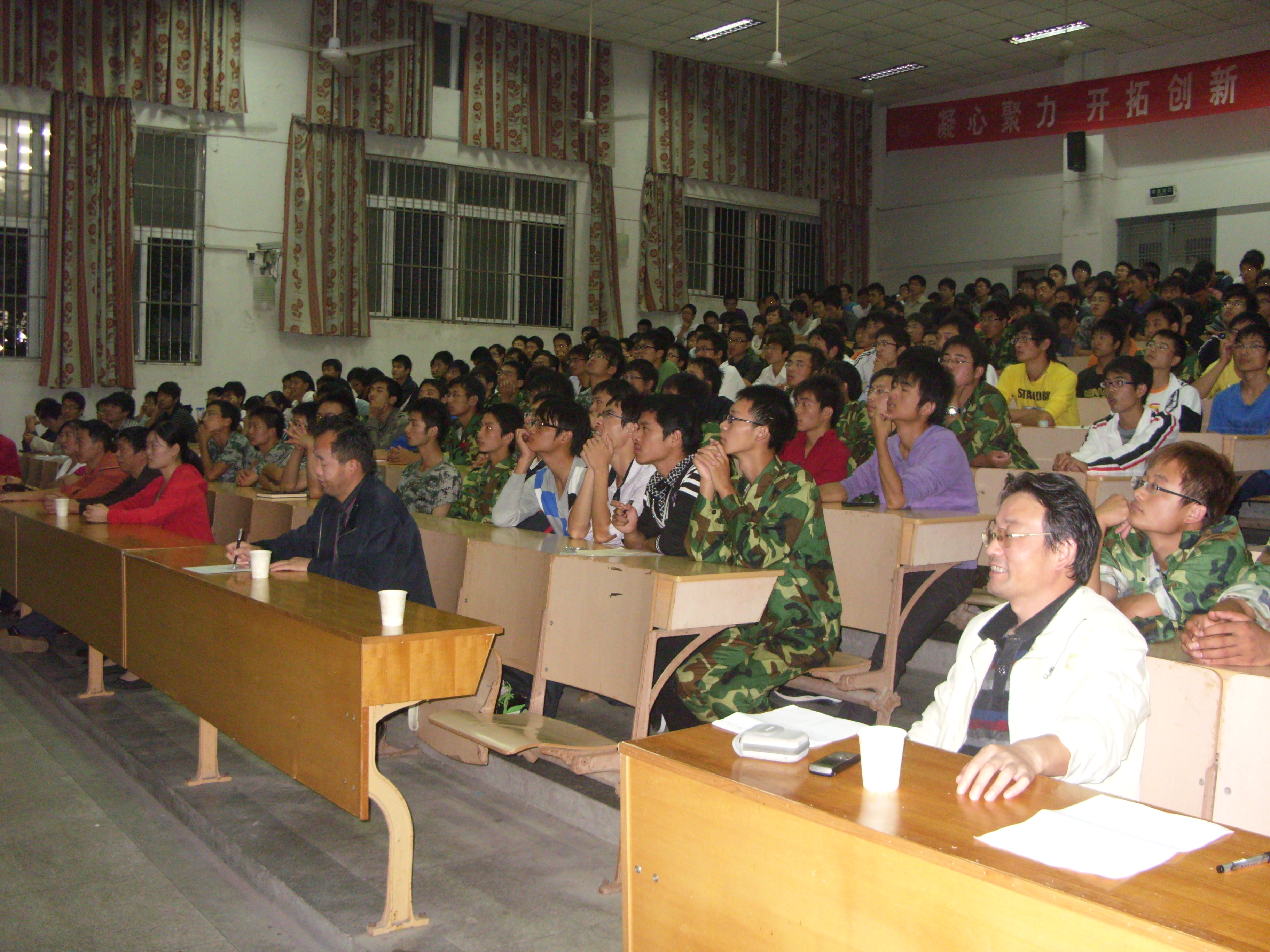 出席本次会议的有教务处副处长徐达奇,机械与汽车工程学院副院长许德章,机电学院副院长伊长文,机械与汽车工程学院党委副书记邓英扣,机械与汽车工程学院力学、土木工程教研室全体教师、新生辅导员以及2010级土木工程专业二本、三本、专升本的311名新生。 在接近2个小时的时间里,干洪首先介绍了我校土木工程专业的建立与发展过程。目前,土木工程专业是我校招生规模最大的专业之一。在两年多的时间里,土木工程专业从无到有,稳步发展。目前全校大土木类专业已经包括土木工程专业、工程管理专业、给水排水工程专业,建筑学专业也已经申报成功,将会在近年开始招生。其次,干洪介绍了土木工程的定义与土木工程的发展史。他形象地阐述了土木工程专业从刚开始的工业与民用建筑发展到现在,如建筑工程、桥梁工程、路基路面工程、港口工程、岩土工程等多方向的综合类学科。生动地说明了世界上古代土木工程、近代土木工程、现代土木工程以及未来土木工程的特征,土木工程是人类智慧的结晶,是人类相互合作的典范。再次,干洪介绍了我校土木工程专业的培养方案,土木工程专业的主干学科为力学与土木工程学,尤其指出力学学科是对土木工程学的重要支撑。他强调了主要课程对专业学习的重要性,是衡量学生是否升降级与是否拿到学士学位的重要指标,要求同学们认真学习,不可有半点马虎。最后,干洪还对全体新生提出了几点要求:1.认真贯彻我校“诚实做人,踏实做事,扎实做学问”的“三做”教育理念;2.主动学习,认真做作业,把书本上的知识转化为自己的能力;3.加强体育锻炼,培养;4.提高自我表达能力。 最后, 整个过程中,同学们认真听讲,积极思考,受到了很大的鼓舞。