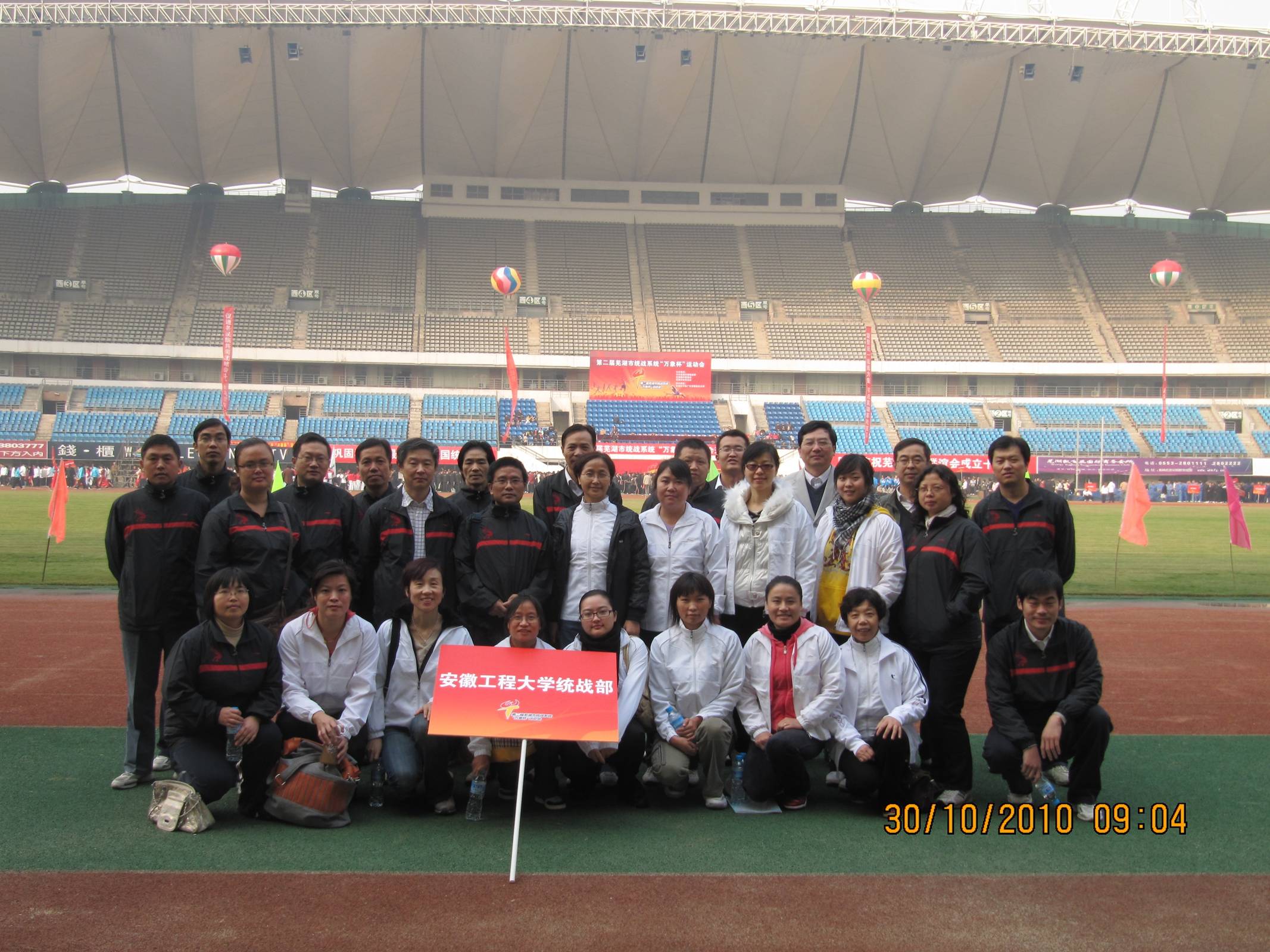 10月30--31日,安徽省芜湖市委统战部、市海外联谊会、市体育总会联合举办第二届统战系统“万象杯“运动会,来自市统战系统各单位、各县区委统战部,海联会部分企业单位和各高校统战系统组成的53支运动队参赛,1600余名来自基层的运动员分别参加了拔河、乒乓球、羽毛球等项目的角逐。 在学校党委的关心重视,党委统战部的精心组织下,我校共36人组成代表队参加了男女拔河、乒乓球和炒地皮的比赛。大家秉承“友谊第一、比赛第二”的优良作风,团结协作、积极进取,赛出了风格,赛出了水平,充分展示了我校统一战线团结协作、拼搏进取、奋发向上的精神风貌。校党委副书记、副校长方友实亲自莅临现场指导,经过激烈的竞争,最终女子拔河获得高校组的冠军,男子乒乓球单打获得第四名的好成绩,为学校争得了荣誉。本次运动会使我校统战成员进一步加强了交流,促进沟通,增进友谊,不仅丰富了精神文化生活,同时也激励大家以更加饱满、更加昂扬的精神状态投入到本职工作中,为学校的建设与发展作出新的更大的贡献。