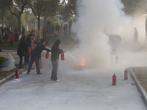 会后,在保卫处同志的指导下,图书馆全体员工在馆东侧空地现场模拟用干粉灭火器扑灭火源。当模拟火源的汽油燃起熊熊大火时,男女馆员争先恐后使用灭火器喷向大火,现场一时白雾弥漫,大火瞬间被熄灭,模拟火源多次点燃,馆员先后试用灭火器灭火,现场气氛活跃,大家受到一次生动的消防教育,提高了防火意识,增长了灭火知识。