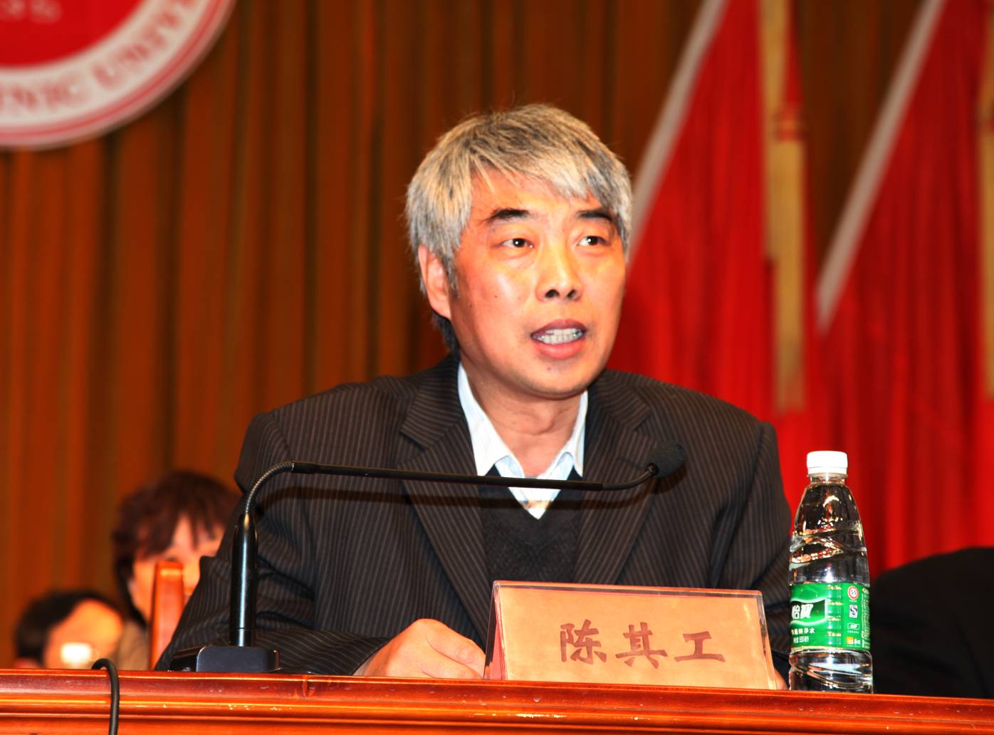 在热烈的掌声中,校党委书记陈其工发表重要讲话。他首先代表校党委和行政对获奖的先进集体和先进个人致以最热烈的祝贺,向辛勤工作在学生工作一线的同志和对学生工作给予极大关心和支持的有关部门表示衷心的感谢!