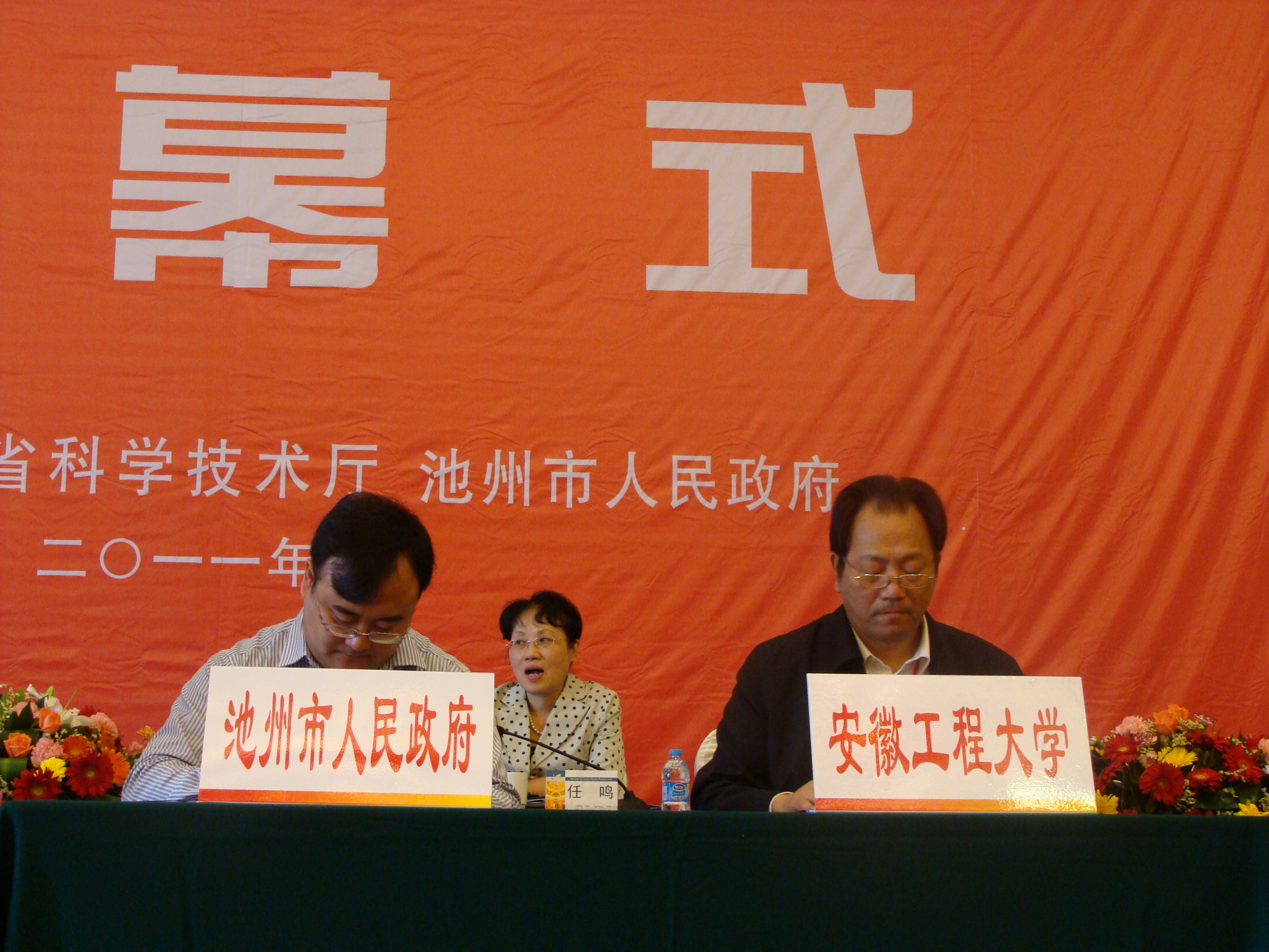 的关心与支持表示衷心的感谢,简要介绍了学校的基本情况,并就如何更好地为地方经济建设服务以及本校的办学定位和科研理念等做了详细的阐述。指出我校与池州市合作的地域优势明显,近年来在农产品加工、汽车配件及机电控制等领域开展着全面的产学研合作,学校多次组织相关教师到池州市企业进行技术需求调研,深入到大九华绿色食品有限责任公司、安徽国润茶业有限公司、旭豪机械有限公司等企业进行了实地考察。汤斌希望通过签订市校全面科技合作协议为契机,校、市之间的产学研合作更加扎实,希望学校的科技人员更多地进入到企业之中,学校的科研成果更多地在池州市企业生根、开花、结果。也欢迎企业家们走进我们的校园,走进我们的实验室,与教师们密切联系,让学校的人才资源、科技资源在广大企业中发挥应有的作用,将校、市合作引向深入,实现务实、高效、互利互赢、共同发展。