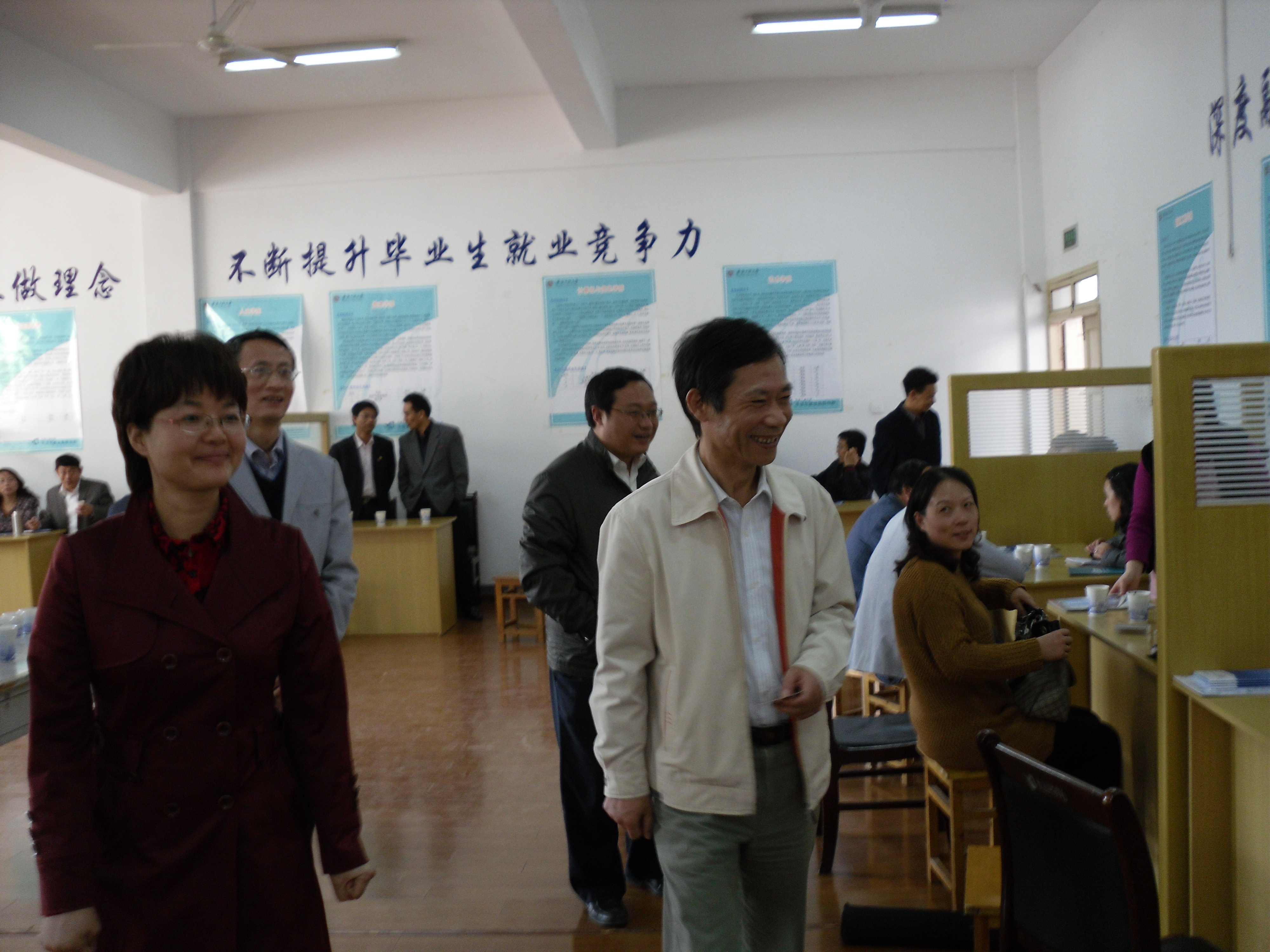 副校长李震对此次活动非常关心,在学生处处长、就业指导中心主任王河,学生处副处长、就业指导中心副主任李卫东的陪同下,亲临现场检查指导工作,看望校方和企业参会代表,并亲切会见了宜兴市人力资源和社会保障局人力资源市场管理办公室主任苏云华一行,双方进行了友好的交谈。