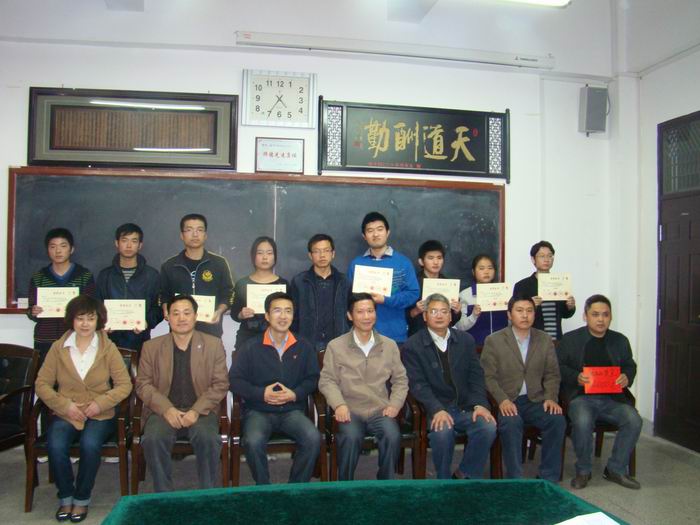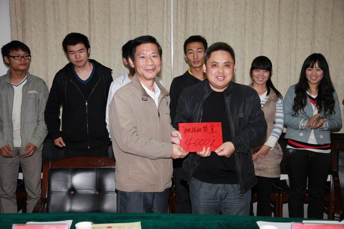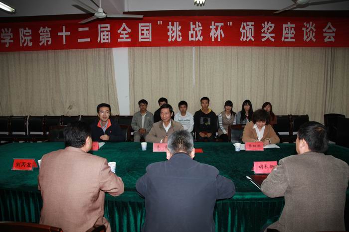 团委书记刘一宣读了第十二届“挑战杯”全国大学生课外学术科技竞赛二等奖获奖人员名单。副校长李震给获奖同学、指导老师颁发了荣誉证书及奖金并合影留念。