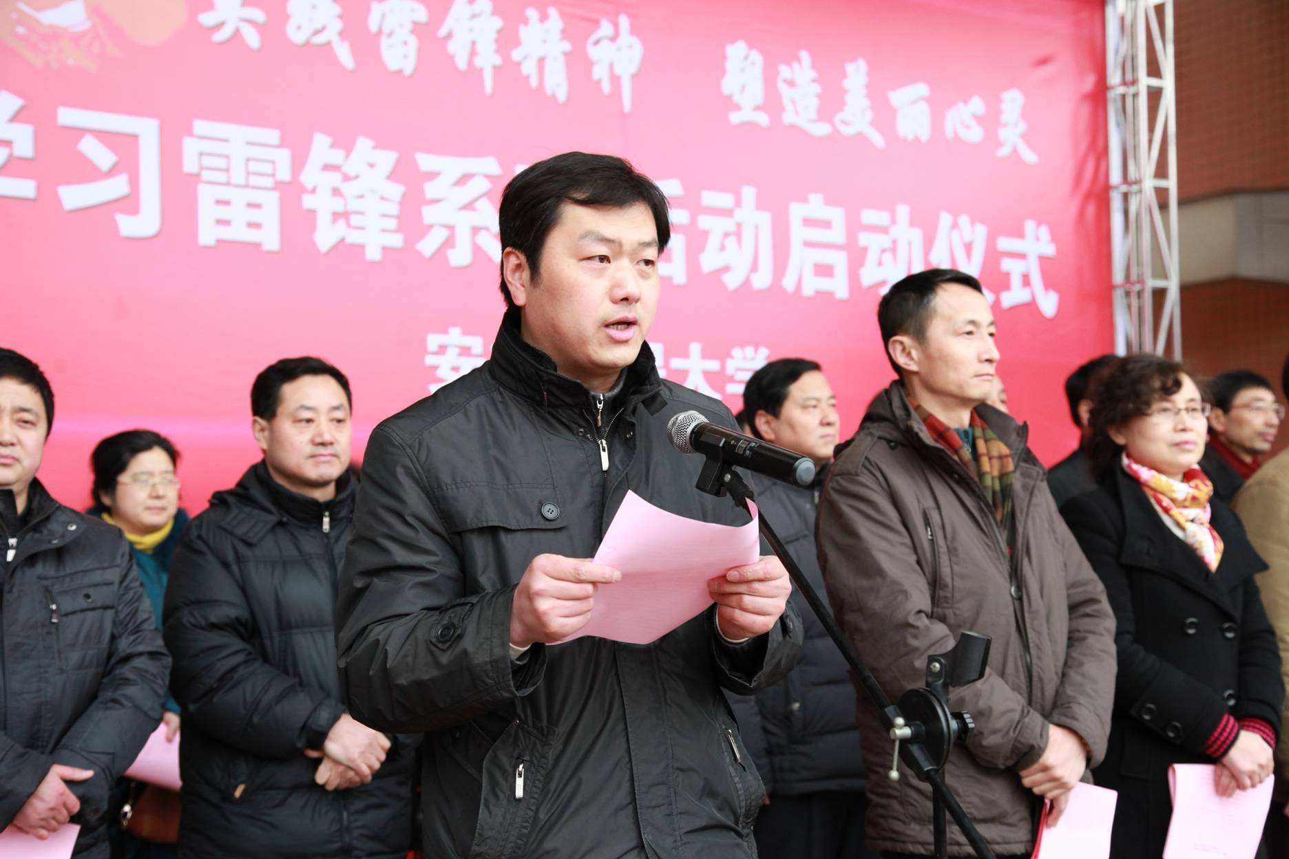 3月2日下午,我校“实践雷锋精神,塑造美丽心灵”——学雷锋系列活动启动仪式在校行政楼前隆重举行。校党政领导陈其工、干洪、方友实、李震,各学院及有关职能部门负责人出席启动仪式。仪式由校党委副书记、副校长方友实主持。