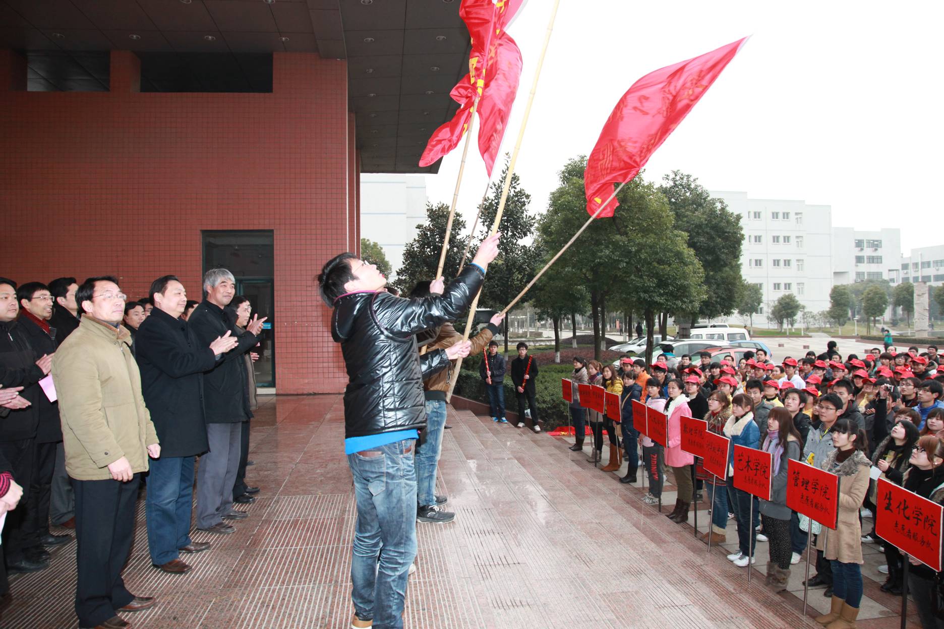 ‘实践雷锋精神,塑造美丽心灵’——学雷锋系列活动正式启动。”随后,校青年志愿者、马列班、党校、青年教师志愿者、研究生志愿者、各学院学雷锋活动志愿者共17支服务队接过了校领导的授旗。