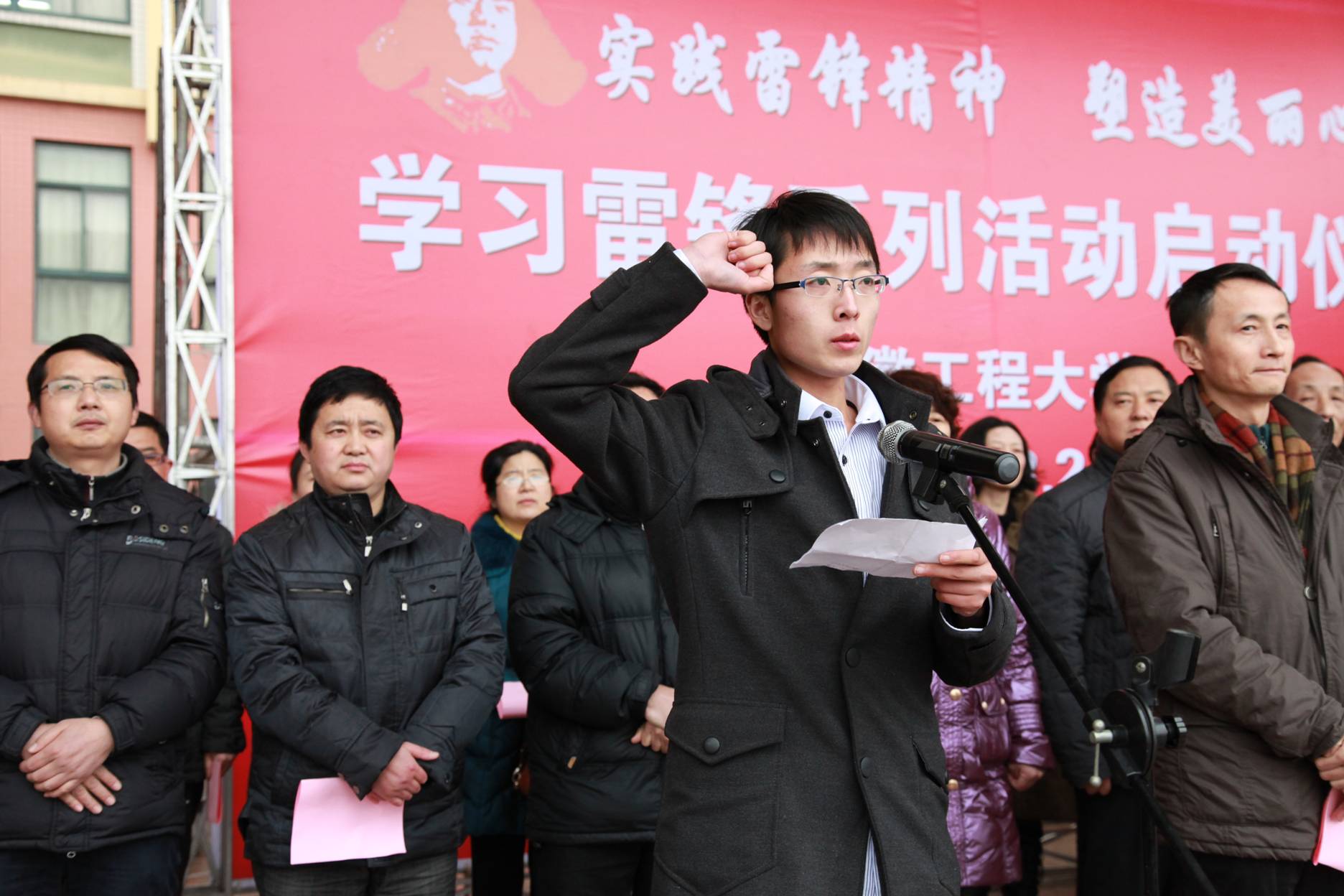 仪式上,学雷锋志愿服务队学生和教师代表分别宣读了倡议书。杨娅娅代表学生倡议,要积极投身到公益劳动和校园建设中,将为人民服务作为实现人才价值的目标。要通过亲身实践,不断加深对雷锋精神的认识,使学雷锋成为大学生的一种自觉行为。教师代表、校师德先进个人许钢代表教师承诺,要引领社会风尚,做社会道德的标杆,为学生做表率,为社会做示范,让师德在学习雷锋活动中进一步彰显。校大学生志愿者服务总队队长王博代表志愿者进行了宣誓。