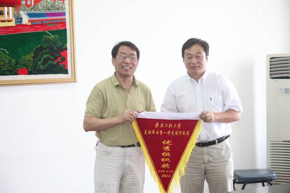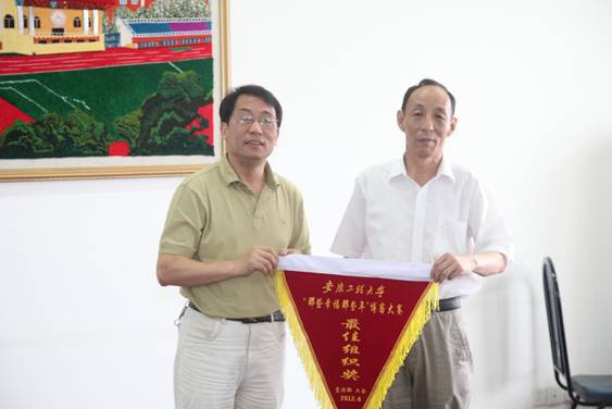 会上,方友实为获得宣传部与工会共同举办“那些幸福那些年” 主题博文大赛优秀组织奖的纺织服装学院、生化学院、人文学院颁奖,为获得宣传部和学工部共同举办的“美好毕业季——将爱进行到底”的优秀组织奖的生化学院、纺织服装学院、计算机学院等颁发了奖旗。