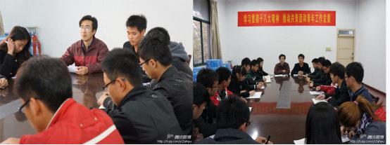 在此之前,校学生会于11月20日下午在校团委会议室组织召开学生干部学习十八大精神座谈会。校团委书记刘一出席会议并对学生干部学习贯彻十八精神作出明确要求,校学生会主席团和学生干部代表参加了学习座谈。