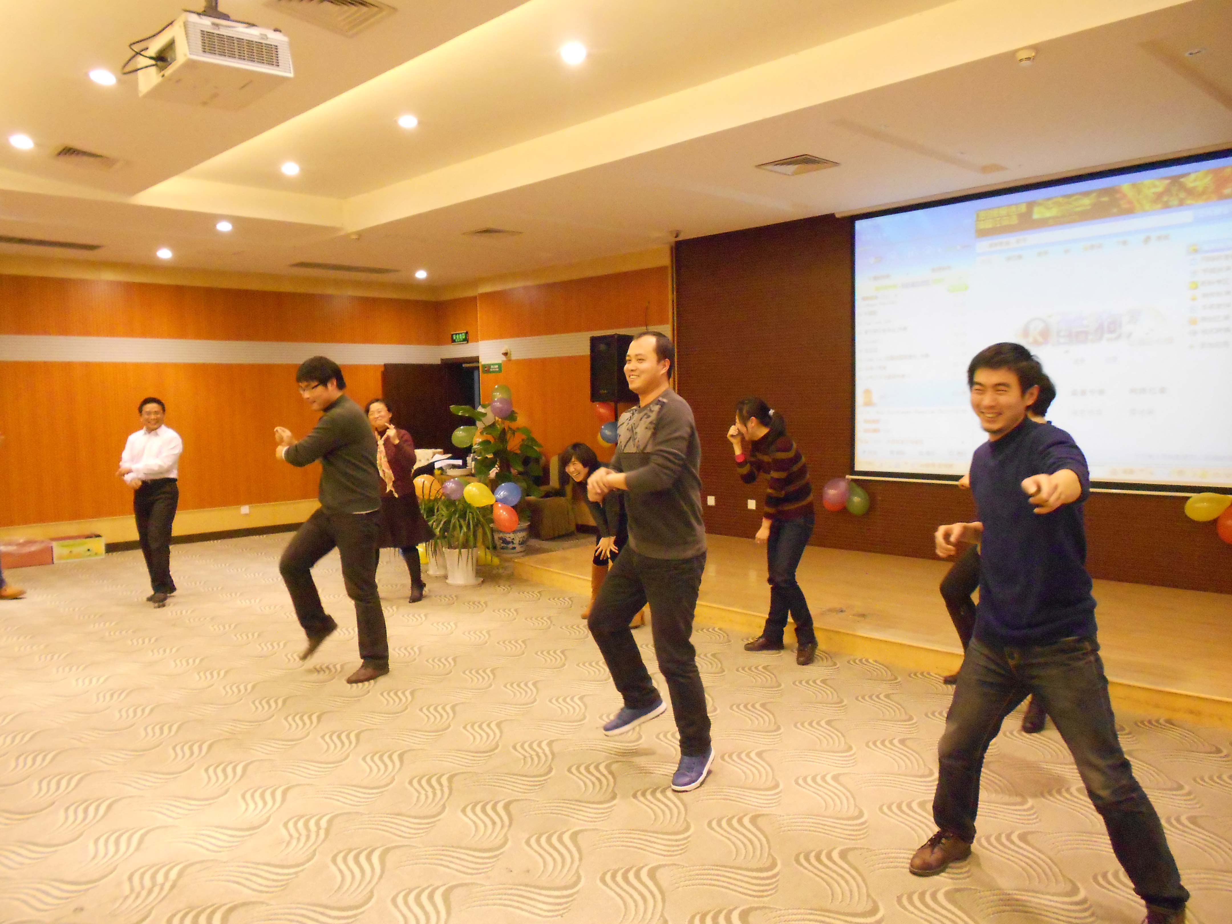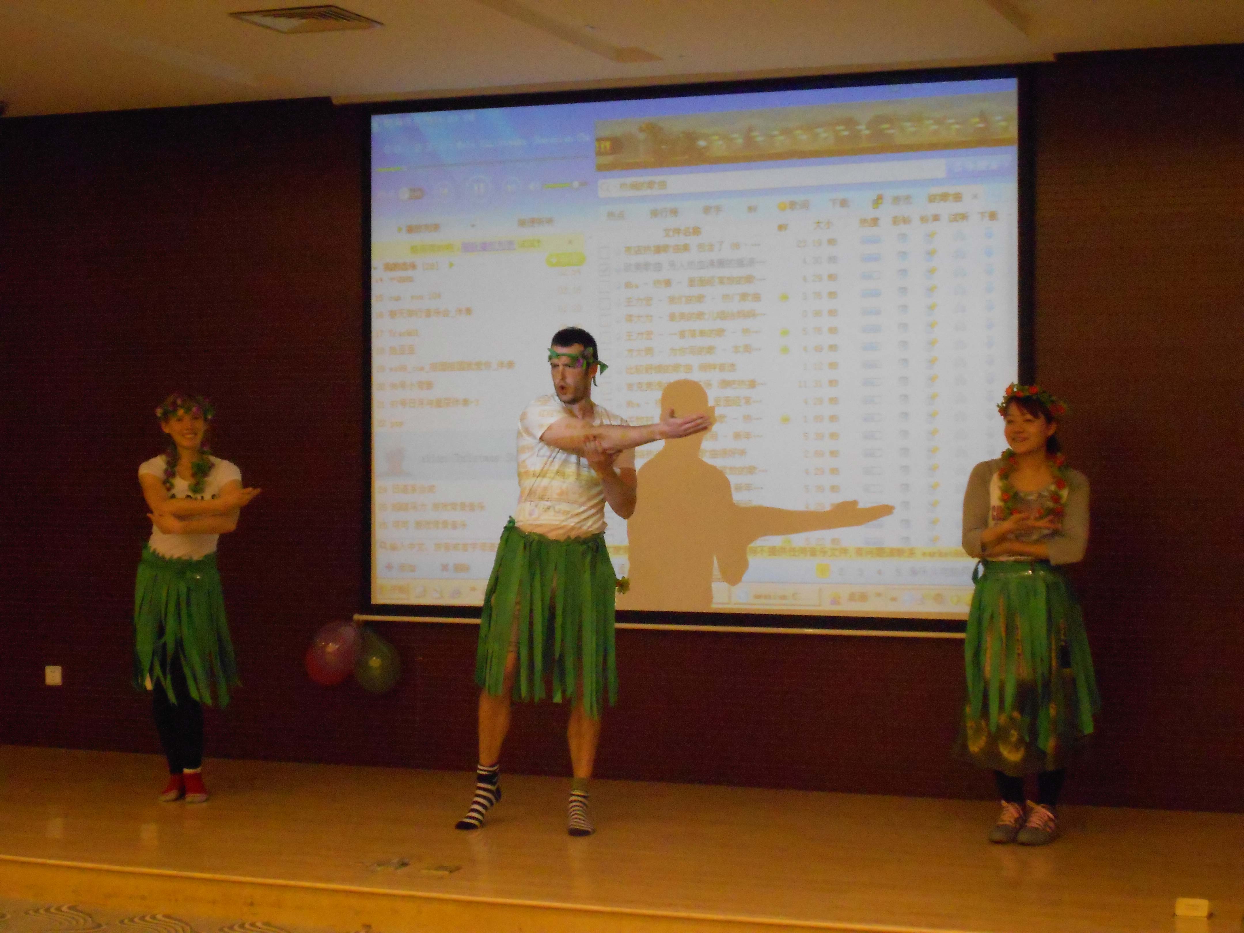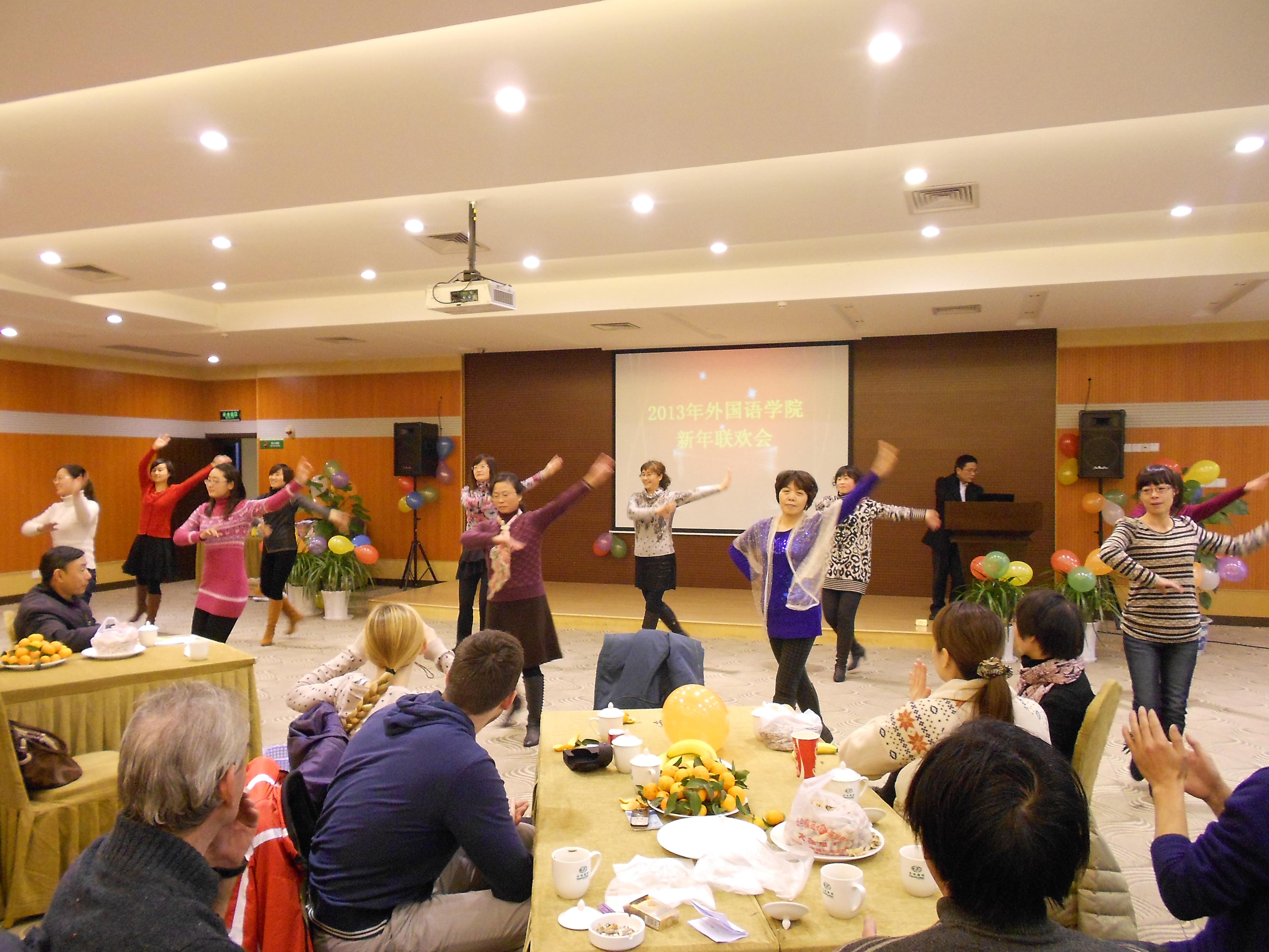 整台联欢会以文艺表演为主线,中间穿插了各种娱乐性的集体游戏比赛。在学院各部门的积极筹备下,联欢会的节目丰富多彩:联欢会在精彩热闹的集体舞表演《思密达》中拉开序幕;学院机关的舞蹈《江南Style》气氛热烈,将联欢会的气氛推向高潮;日语系老师表演的歌曲舞蹈串烧《千手观音》融合了多部影视剧歌曲的经典桥段,加上老师们的轻松幽默的表演,令人印象深刻;英语系搞笑夸张的小品《艺考》、大学英语第一教学部老师讲的笑话和第二教学部表演的幽默风趣的《三句半》都让大家捧腹大笑;外教表演的集幽默与艺术于一体的舞蹈《Hawaii Christmas》仿佛把我们带到了夏威夷海滩,体味了别样的异域风情;还有精彩的歌曲演唱《天上有没有北大荒》、《Five Hundred Miles》、《红河谷》、《Rolling in the Deep》等。文艺表演间隙,还进行了趣味纷呈的夹乒乓球、跳绳、踢毽子比赛。精彩的文艺表演和激情投入的游戏既展示了我院教师的机智幽默和多才多艺,也展示了学院教师自信、自强、团结、乐观向上的精神风貌。