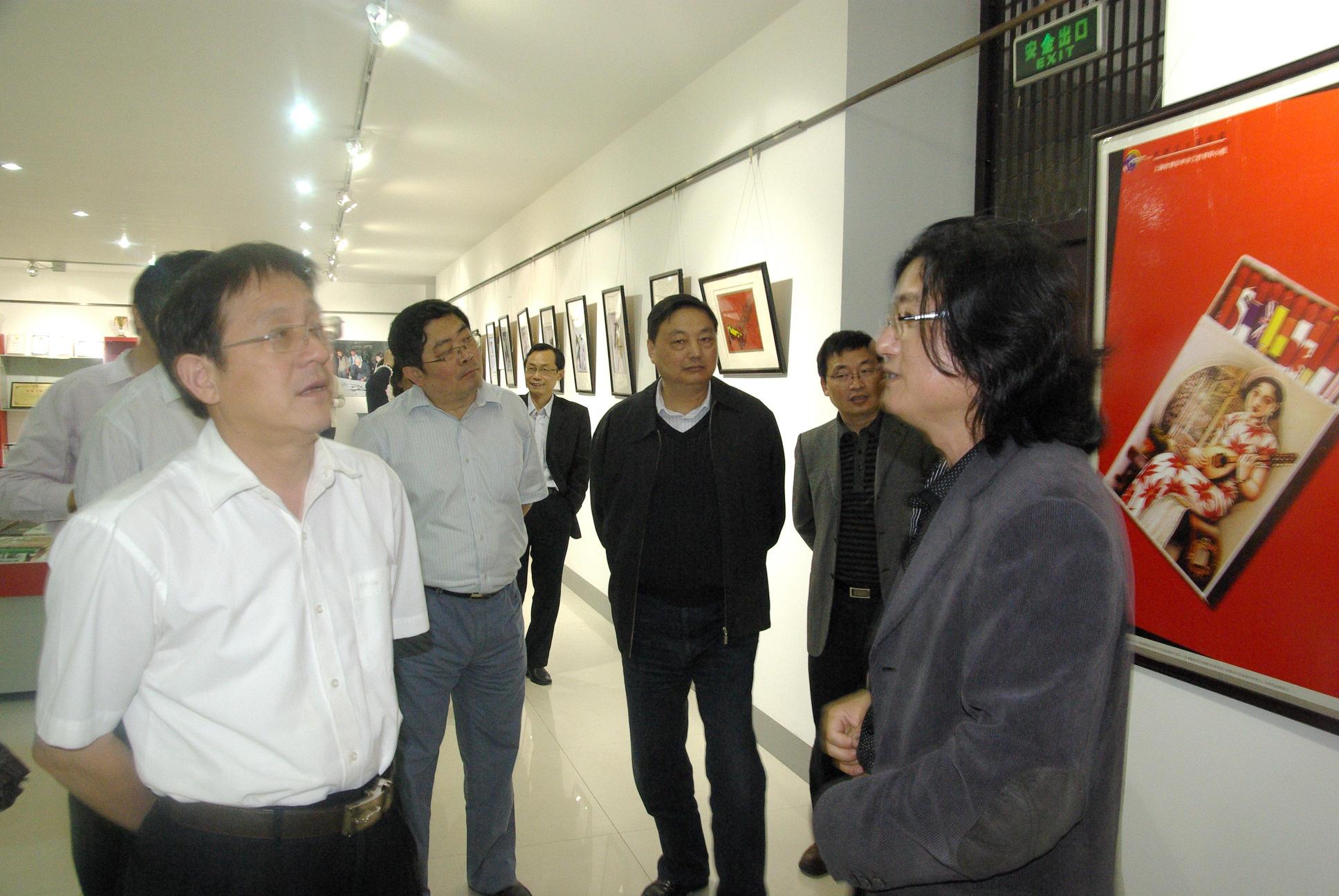 高开华一行在干洪陪同下,实地考察了我校艺术设计省级人文社科重点研究基地的装饰艺术研究室、包装设计研究室、工业设计研究室、逆向工程研究室以及动画设计工程中心、基地成果展厅等。高开华在听取了我校落实《安徽省高等学校哲学社会科学繁荣计划》工作情况汇报以及对基地现场考察后,对我校艺术设计鲜明的特色、丰硕的科研成果、先进的科研仪器等给予充分肯定。特别在动画设计工程中心,高开华详细了解了基地在成果转化方面所作工作,对取得成效给予高度认可,并要求发挥工程大学省级人文社科基地在成果转化方面已有的优势,整合资源,促进在芜高校省级人文基地的协同创新。