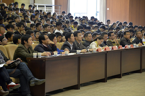陈其工重点阐述了学生干部的责任和担当问题。他结合自身成长的经历、领导干部的经验和国际比较的视角,淳淳善教地告诫同学们,要当好学生干部,一要有好的学习成绩,善于全面学习,做到品学兼优,以自己全方位的人格影响同学;二要有较强的服务意识,在服务中锻炼自己;三要有较高的道德素养,引领社会,为同学做表率;四要有坚定的理想信念,高举旗帜,与国家同呼吸共命运,积极投身为实现中华民族伟大复兴的中国梦而奋斗的伟大实践。他在与同学们分享了自己学生时代在浙大学习成长的经历和浙大优良的学风对自己的影响后,语重心长对同学们说,学生干部首先还是学生,必须搞好学习,即使我作为党委书记,我也一直没有觉得是什么干部,只是多一些责任和服务,同学们更不能官僚化。学生干部必须正确分析和看待中国特色社会主义建设过程中出现的各种问题,用正确的国际视野和辩证分析方法来看待发展中的问题。要深思当前社会上存在的不正之风和一些突破道德底线的社会现象,强化责任和担当意识,传递青年学生应有的正能量。