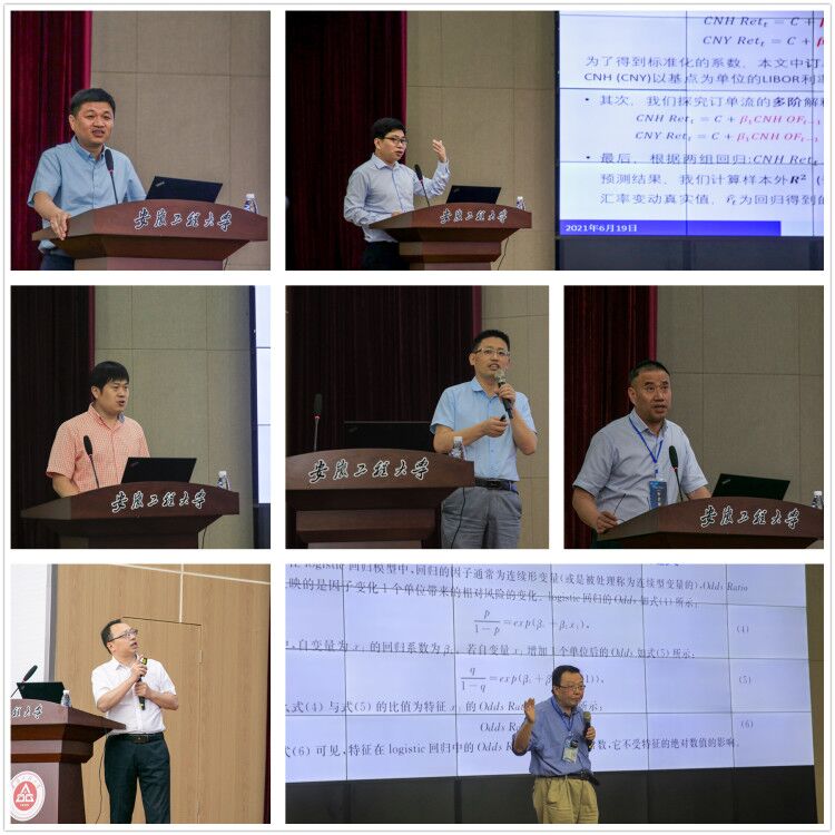 中国银保监会芜湖监管分局副局长邢丽,RayBetApp官网下载 经济与管理学院院长龚本刚主持下午的报告会。中山大学管理学院特聘教授袁先智、合肥工业大学经济学院教授吴华清、湖南师范大学教授欧阳资生、中国科学院系统科学研究所副研究员房勇、复旦大学经济学院教授杜在超、江西财经大学金融学院教授凌爱凡、浙江大学经济学院教授骆兴国分别以《金融科技中基于人工智能算法针对金融风险特征筛选框架的建立与应用》《开源还是节流?——我国商业银行效率、行为模式与所有制差异》《经济政策不确定性、网络舆情与系统性金融风险》《加密货币市场特征分析及投资策略研究》《房地产行业冲击下的系统性风险研究——基于DHDC压力测试》《数字金融对银行信贷是“溢出”还是“挤出”的影响?》《宏观信息、订单流与汇率变动——基于在岸和离岸人民币的分析》为题进行专题报告。