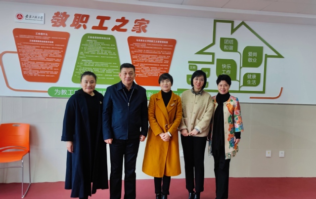 本网讯11月29日,安徽省教科文卫体工会主席吴海明、三级调研员李晓燕一行到我校调研指导工作。校党委副书记苏国红,校工会、马克思主义学院负责人陪同调研,并与吴海明一行进行了座谈。