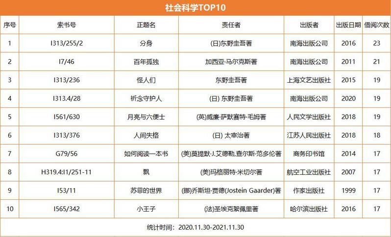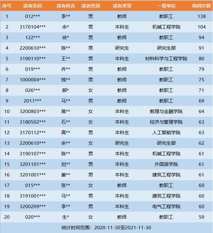 本网讯 为了有效了解读者阅读情况、分析读者阅读行为、掌握读者阅读需求,给图书馆的资源建设和读者服务提供参考和依据,进一步提升服务质量,图书馆对2021年的图书借阅与电子资源使用情况进行了整理,并发布《2021年图书阅读报告》。