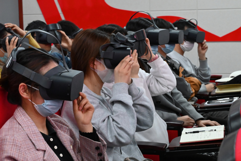 活动现场,马克思主义学院徐东辉副教授为大家作了《芜湖革命史》的专题报告,徐东辉从大革命时期、土地革命时期、抗日战争时期及解放战争时期带我们重温了江城芜湖的革命史,并勉励大家要坚定理想信念,矢志不渝为实现中华民族伟大复兴而奋斗。电气工程学院研究生党支部书记吉萌老师从以理论促建设、以体系强效果、以能力带队伍、以组织建设助推学生成才和学院发展四个方面和大家分享了作为基层学生支部书记通过学习百年党史,不断提升基层组织建设工作的能力和水平的重要启示。马克思主义学院研究生党支部委员廖玉林在交流中提出要从党史学习中夯实砥砺奋进的理想信念,积累不忘初心的源泉力量。参加沙龙的人员通过VR观看了革命影片,进一步提升了凝聚共识、开拓思路的研究生党建工作意识。