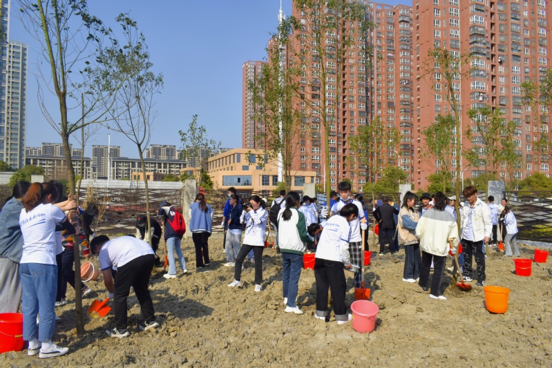 本网讯 为学习宣传贯彻习近平生态文明思想,牢固树立“绿水青山就是金山银山”的理念,进一步培养学生的劳动意识,落实劳动教育。3月11日下午,在全国第四十四个植树节来临之际,经济与管理学院、校团委、国际工程师学院与万春街道春城社区、芜湖市城管三中队在国际工程师学院组织开展党建共建“引行”计划之“春城筑绿,梦溪育人”植树节植树活动。校党委副书记、校长王绍武出席活动,国际工程师学院管委会负责人、经济与管理学院师生代表,春城社区部分工作人员、城管三中队代表参加活动。