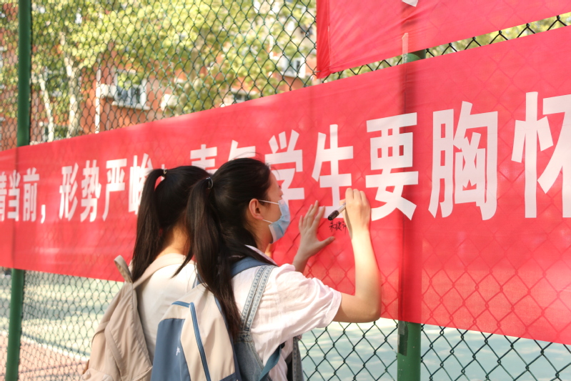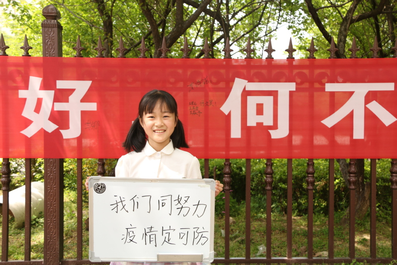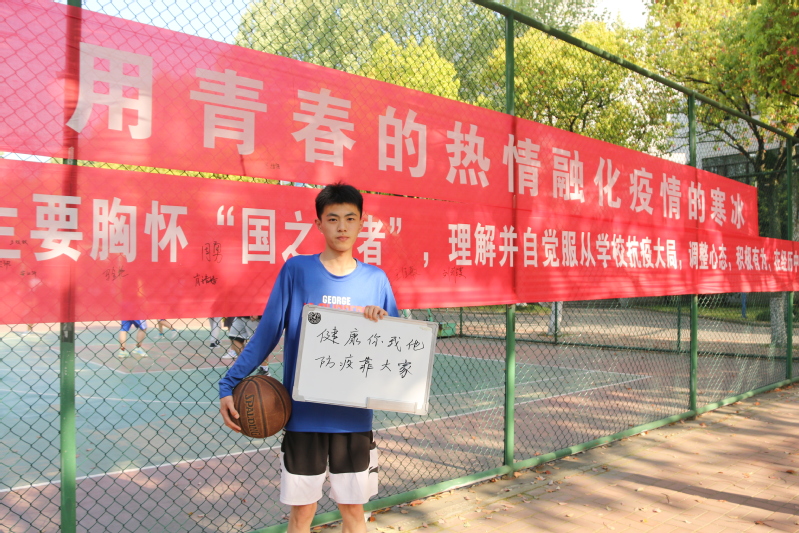 材控193班的怀新月在展板上签下自己的姓名后表示:“感谢学校为我们筑起了一道道安全屏障,将疫情阻隔在校门之外。在严格管理期间,学校非常关注我们的身心健康,在校内拉了很多横幅鼓励我们,并且很多学生社团也自发地举办了很多活动,让大家参与其中,如广场舞、趣味运动会、手写诗词大赛……面对疫情,除了调整心态外,强身健体也十分重要,就像横幅中写的,我们要多运动多锻炼,日后才能实现为祖国工作五十年的目标。”
