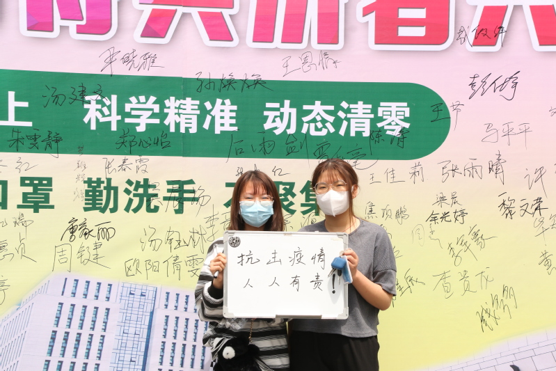 活动现场,同学们积极参与,在展板上、横幅上郑重签字,承诺遵守学校疫情防控措施,履行好防控疫情责任,坚定信心、共战疫情。一个个名字不仅签在了展板上,也烙在了同学们的心中,展现了同学们为疫情防控贡献自己力量的决心。