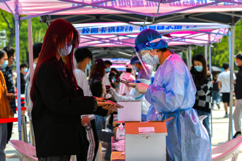 4月18日,学校举行新一轮全员核酸检测,检测人员包括校本部、国际工程师学院两校区全体学生、全体教职员工以及在校内学生食堂、学生宿舍、物业公司等外包服务公司人员。
