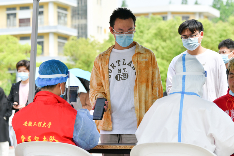 计算机科学与技术201班的孙亿在排队进行核酸检测时说:“自从知道4月17日凌晨芜湖新增一例阳性感染者,我和同学们都很担心。但学校迅速组织了全员核酸检测,得知检测结果都为阴性,我如释重负、彻底放心了。”