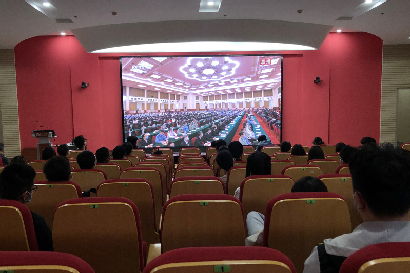 本网讯 5月10日上午10时,庆祝中国共产主义青年团成立100周年大会在北京人民大会堂隆重举行。中共中央总书记、国家主席、中央军委主席习近平发表重要讲话。学校积极组织广大师生、团员青年通过多种方式收听收看大会实况。学校共设置了17个分会场,其中校党委中心组成员在A座1215会议室集体收听收看大会实况。