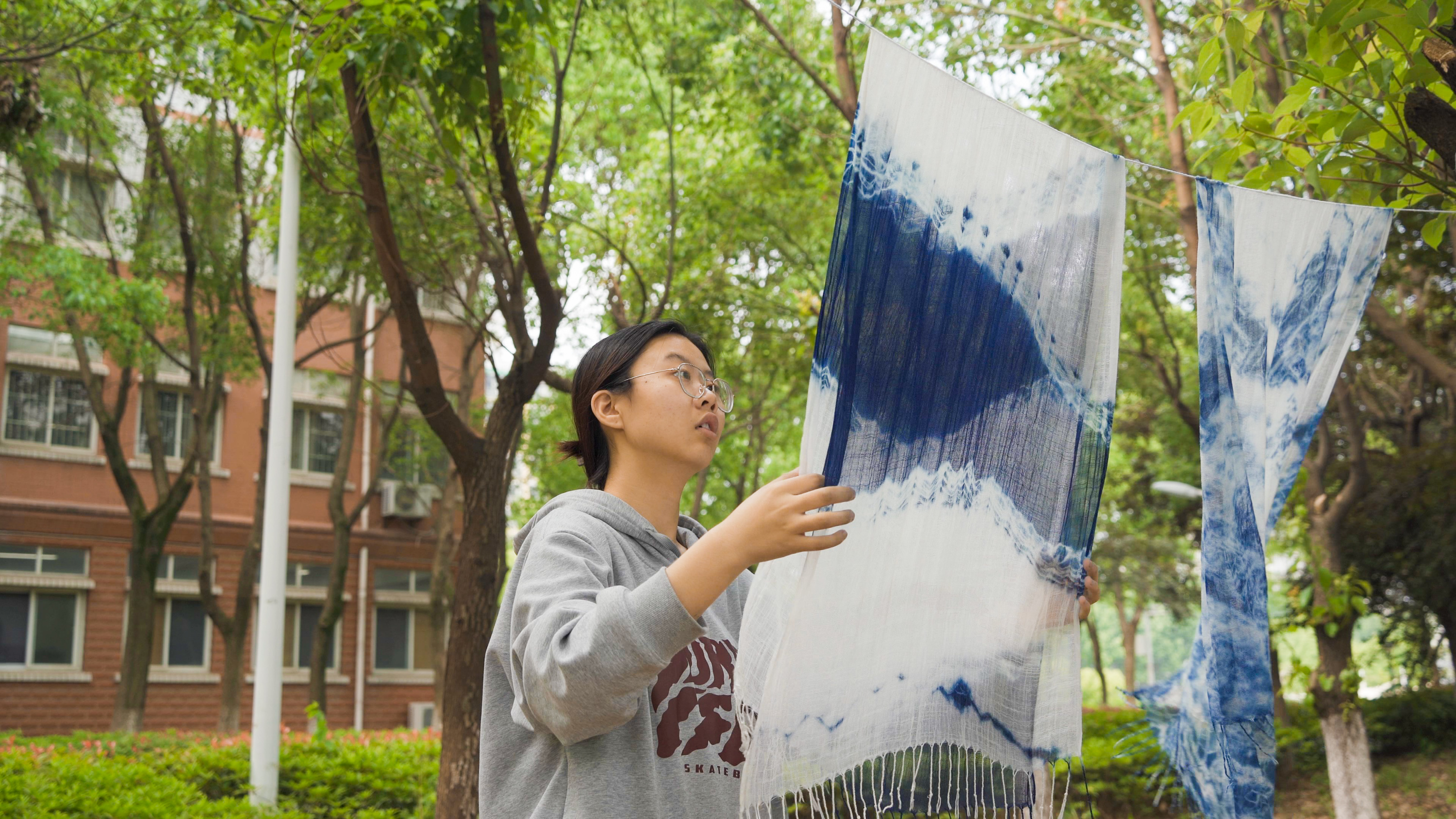 芜湖浆染业在明代就已名扬全国,《天工开物》一书中有“织造尚松江,浆染尚芜湖”的说法。在《芜湖浆染》实践课上,纺织服装学院结合专业特色,组织实践活动,脱浆、漂洗、上色,同学们慢慢体验淳朴的手工制作,领略色彩的斑斓。前期的捆扎处理需要极大的耐心,做出来的东西才会丰富、有层次。《缝纫制作》不仅是一门劳动教育课程,也是家庭生活中的一项必备技能,手工针法、基本机缝方法、小物件制作等形式使同学们眼前一亮,刚开始操作的时候会手忙脚乱,但是随着课程的开展同学们日渐娴熟起来。