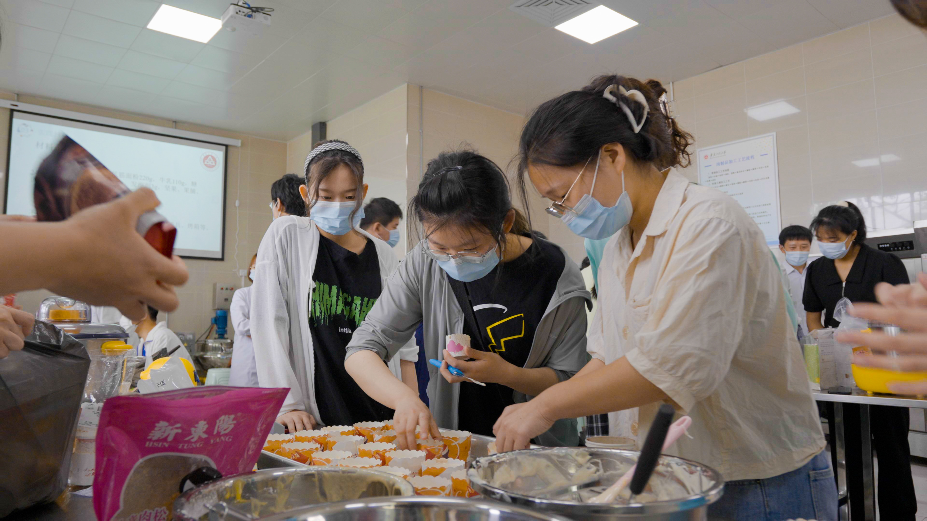 美食烹饪成为了新的教学内容,《酸奶制作》课程备受欢迎。李玉锋老师说,制作冰淇淋,不仅让学生加强了食品制作的理论学习,也享受到了劳动带来的快乐与体验。从操作生疏到驾轻就熟,同学们充分发挥着自己的动手能力,布丁的配料、加热、搅拌、罐装,每一步都要注意细节,在体验中感受一名“糕点师”的乐趣。《面包和蛋糕制作》课后,土木214班王孝琦同学分享道,“制作食物的过程不仅需要技巧,也需要耐心。当品尝到自己做的面包,我觉得格外香甜,将面包分享给朋友时,他们的认可使我十分激动。”
