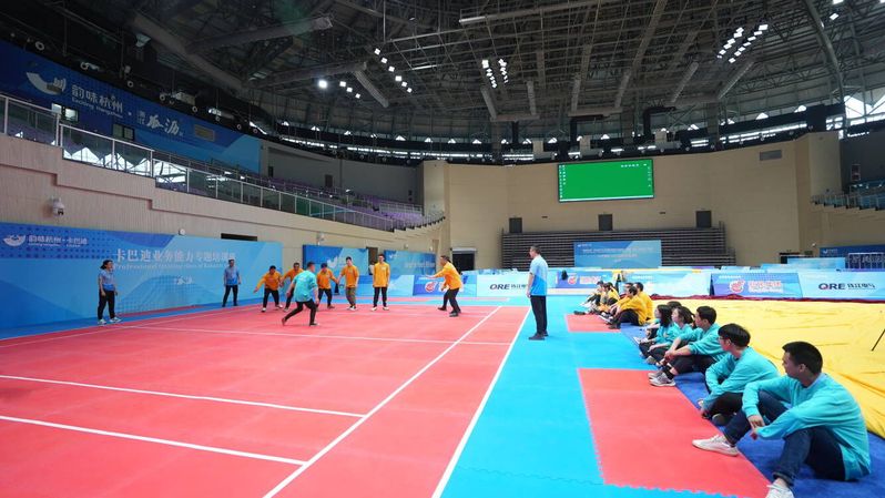 培训班上,我校体育学院教师、杭州亚运会卡巴迪竞赛技术运行主任薛保红讲授了杭州亚运会卡巴迪项目的起源发展、场地设施、技术规则等基础知识;卡巴迪训练场馆主管李品仙详细讲解了卡巴迪运动竞赛规则;卡巴迪比赛场区主管赵德勋通过中英双语教学,讲解了卡巴迪日常用语、专用术语。3位教师还指导学员们开展了卡巴迪竞赛实战演练。培训现场欢声笑语,学员们为每一次的精彩进攻而欢呼雀跃,为每一次的成功防守而激动不已,共同感受着卡巴迪这项古老团队运动项目的魅力。