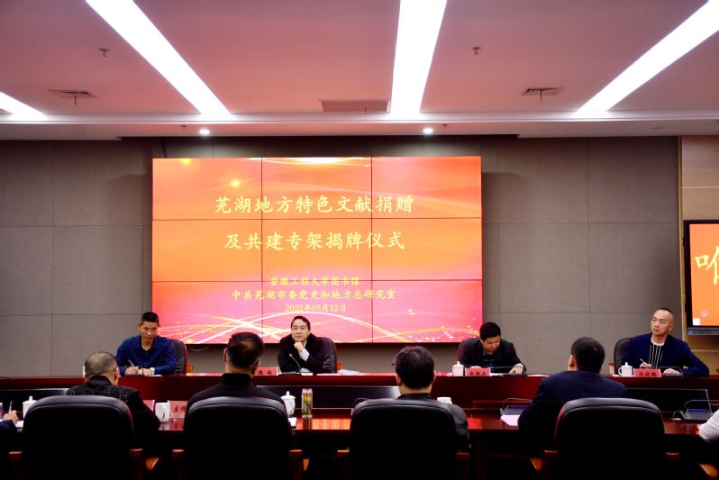 本网讯 为推进校市合作,共享地方特色资源。5月12日,学校图书馆与市委党史和地方志研究室在图书综合楼201会议室召开会议并举行图书捐赠和“芜湖地方特色文献专架”揭牌仪式。芜湖市委党史和地方志研究室主任魏超一行,副校长叶常林及相关学院负责人参加了本次活动。活动由图书馆馆长王忠群主持。