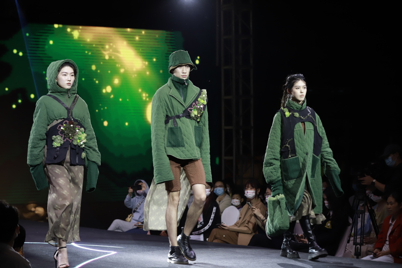 本次活动由纺织服装学院主办,校党委宣传部、教务处、学工部、团委、国际工程师学院管委会、机械工程学院(人工智能学院)、电气工程学院协办。发布会以“昪•生”为主题, 共发布2022届毕业生设计作品50个系列94套服装,其中男装22套、女装62套,童装10套,由四个年级服装表演专业的48位同学倾情演绎。这些毕业作品以多元化为扩散点,把多元化设计理念通过结构、重塑、解构等方式表现出来。设计师巧妙地融入“国潮”元素,将敦煌壁画、中国山水、自然仿生、复古混搭等设计灵感与扎染工艺、面料再造等表现手法相结合,从而使得时装作品既传承了文化底蕴,又焕发出新的生命力。本次时装秀不仅有系列服装,也有潮流单品,还首次加入了3组童装系列。青年学子穿上本届毕业生设计的作品,他们将青春的色彩与美丽绽放在秀场,观众挥舞着荧光棒,与T台的灯光交相辉映,构成一幅流动的青春画卷。