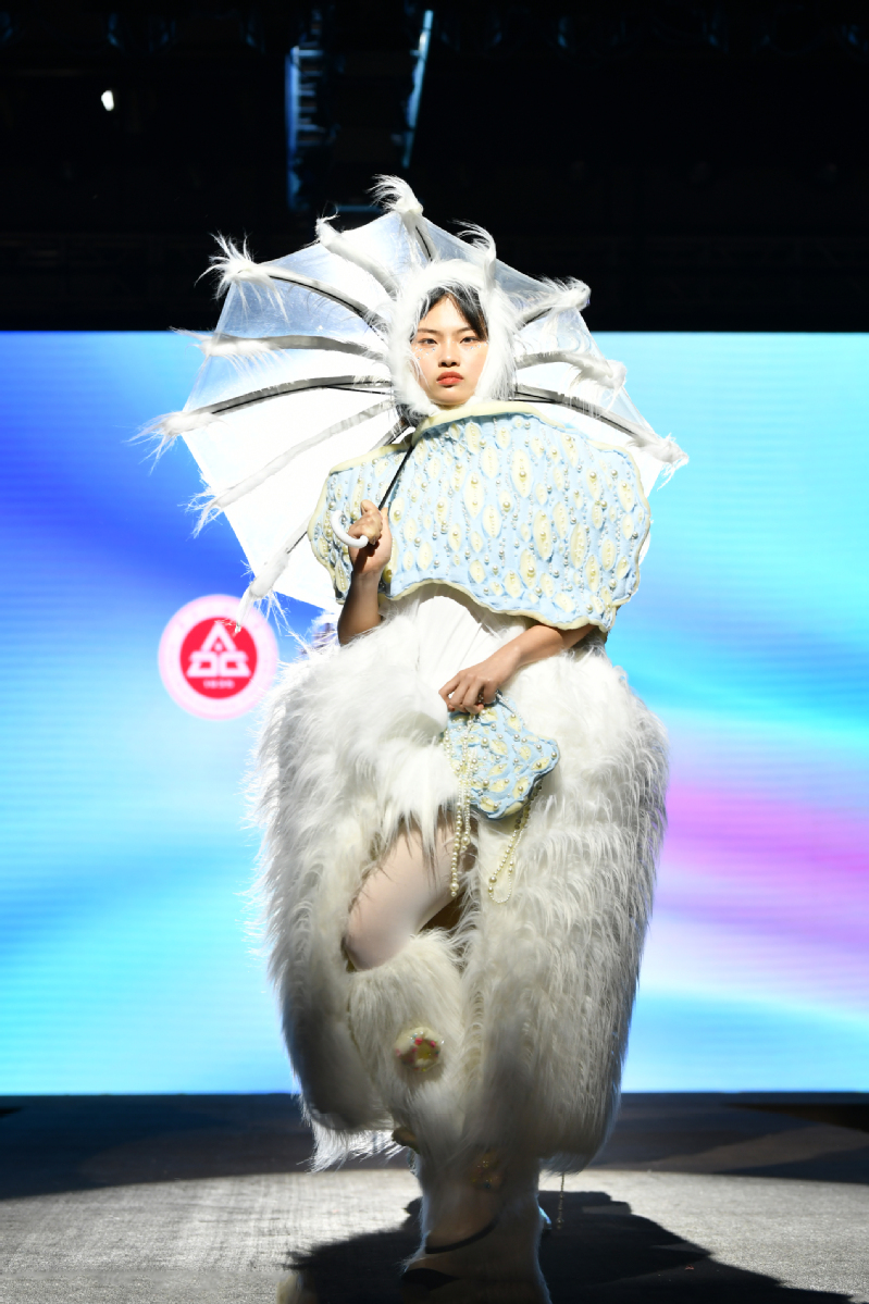 “本次发布会我一共带来3个系列设计作品,有一个系列是以中国传统的青花瓷元素为设计灵感,将其与儿童礼服相结合,体现了传统文化的魅力”,服装与服饰设计专业181班的陈旭展是参展设计师,他分享了自己设计过程中的苦辣酸甜:“我经常通宵改设计稿,衣服做出来之后还要进行拍片、修图、调整,但当看到自己的作品在秀场上展出的那一刻就觉得一切付出都是值得的!9月份我要去北京服装学院读研,我会继续努力,在服装设计的赛道上跑出属于自己的精彩!”