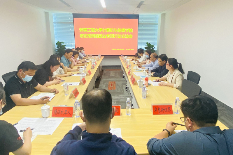 计算机与信息学院院长汪军介绍了计算机与信息学院人才培养、专业建设、科技服务及产学研等方面情况,他表示落实芜湖市“紫云英计划”,提高留芜人才基数,进一步服务社会、服务地方经济。院党委副书记孙德茹介绍了学院2022届毕业生就业情况,并欢迎企业与学院对接开展宣讲活动。学院副院长刘涛对各企业代表的校企合作意向表示欢迎和感谢,希望后面能进一步拓展合作内容和形式。