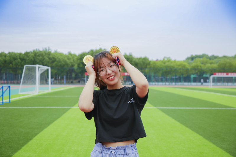 建筑学211班虞于萱100米冠军