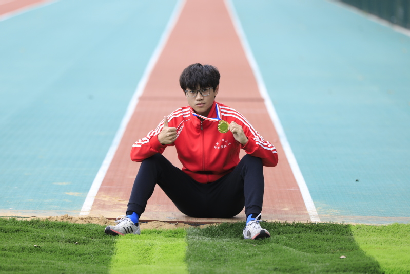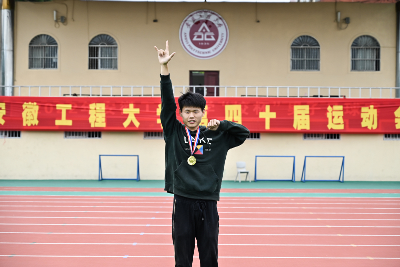 工业设计212班陈功 100米、跳高双料冠军
