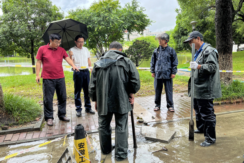学校党委高度重视此问题,校党委书记张志宏,校党委常委、副校长郑健第一时间来到积水路段,现场办公,指挥排涝。后勤保障处相关负责人和有关工作人员于6月5日凌晨5点到达各个积水路段,通过水泵抽水、搭建临时通道等方式力求在最短的时间内将暴雨带来出行不便的影响降到最低。截至发稿时,我校大部分道路已经恢复通行。