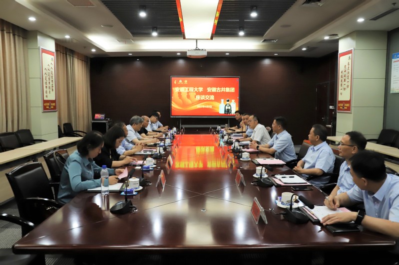 在古井集团,王绍武一行与集团党委副书记、总裁李培辉及安徽古井贡酒股份有限公司高管、杰出校友进行座谈。双方围绕人才培养、实习实践、科技合作等事项进行深入研讨,在推荐毕业生高质量就业、联合引进高层次人才、合作开展科技攻关等方面达成一致意见。