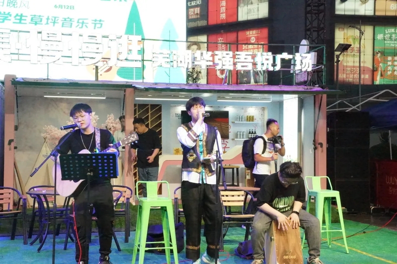 我校大学生乐队举行的“夏日晚风”大学生草坪音乐节在街舞协会的开场舞中拉开帷幕,《写给黄淮》《你是人间四月天》《春风十里》《平凡之路》《像风一样》《凤凰花开的路口》《成都》《彩云之南》等节目,吸引了大量的游客驻足参观,给集市增添了活力与氛围,彰显了工科学生的艺术素养。