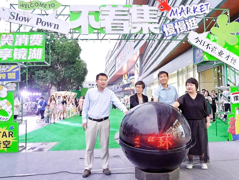 苏国红、曹锦平、钱彬彬、方婷共同为本次活动开启启动球,并一同参观环保集市,对我校师生、镜湖区团委组织展示的环保集市作品,以及创新的形式给予高度肯定。