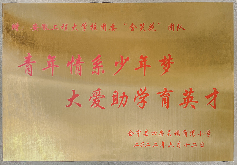 本网讯 6月12日,甘肃省会宁县四房吴镇蔺湾小学给我校“含笑花”志愿服务团队发来“青年情系少年梦 大爱助学育英才”感谢牌匾,对我校团员青年主动资助该校贫困学生表示感谢。