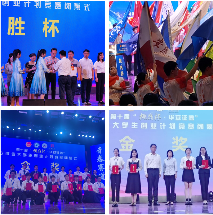 本网讯 6月16日,由共青团安徽省委员会、安徽省教育厅、安徽省人力资源和社会保障厅、安徽省科学技术协会和安徽省学生联合会等单位共同主办的第十届“挑战杯·华安证券”安徽省大学生创业计划竞赛终审决赛在安徽工业大学闭幕。我校获金奖2项、银奖5项、铜奖11项,捧得本届赛事“优胜杯”。