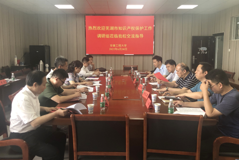 王芳介绍了此次调研组进校调研的目的,通报了芜湖市知识产权整体情况,强调知识产权生产、保护的意义,对我校知识产权工作特别是赋权改革工作取得的成绩予以肯定,希望今后市、校加强知识产权工作合作,为质量强市做出应有的贡献。