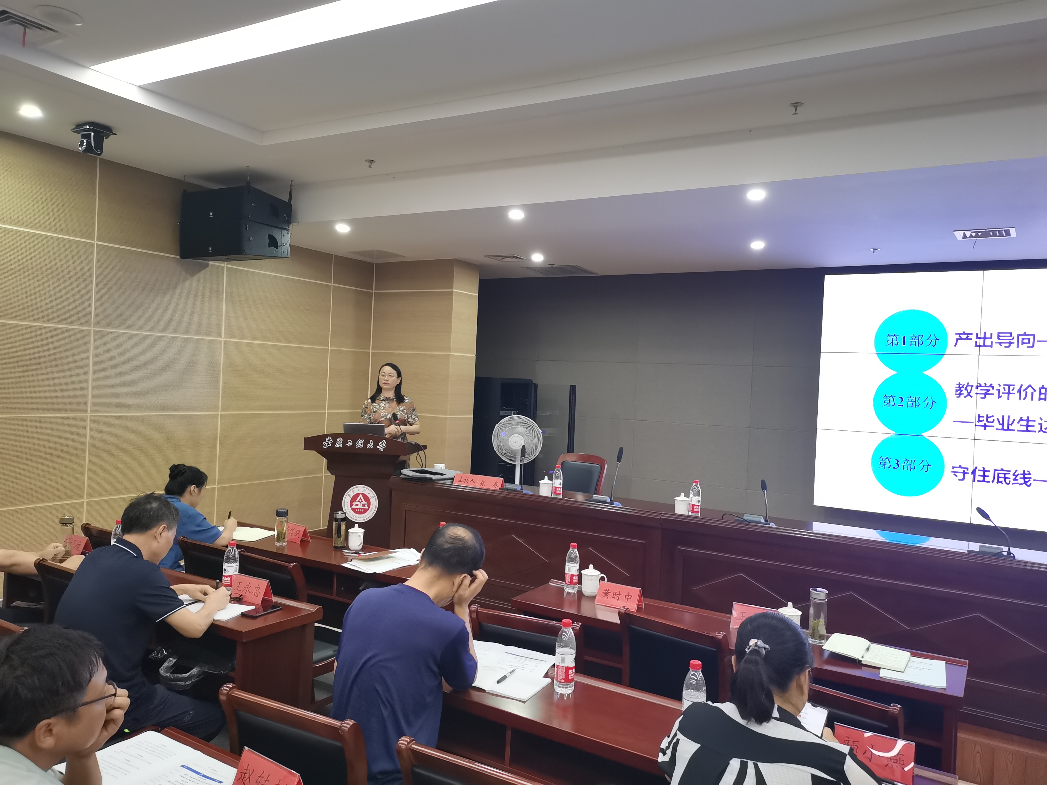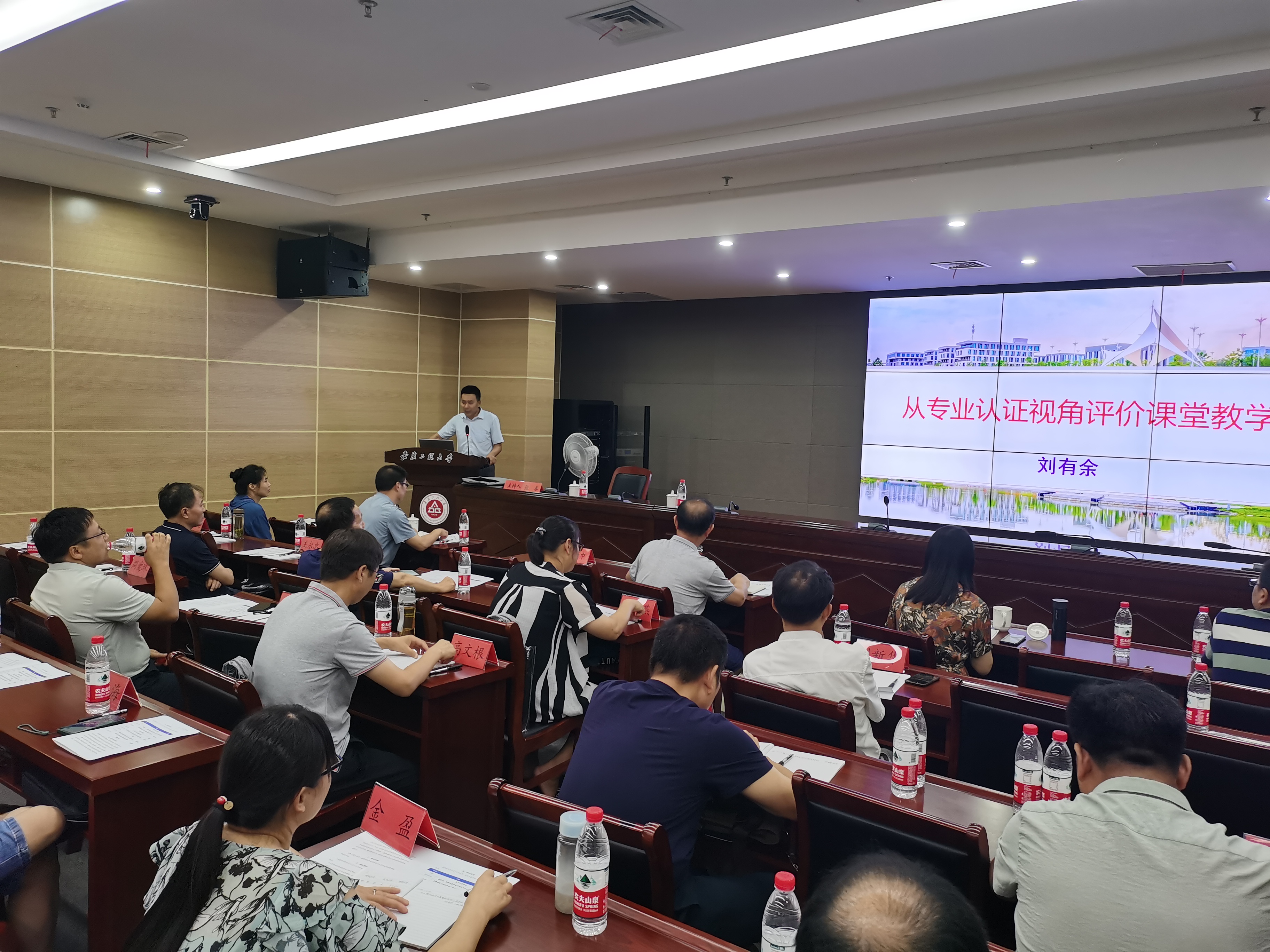 学校计算机与信息学院副院长刘涛教授从落实工程教育认证的理念方面作了“面向产出的教学评价”专题报告,从产出导向—落实工程教育认证理念、教学评价的焦点—毕业生达到明确的毕业要求、守住底线—建立面向产出的评价机制三方面介绍了面向产出的教学评价。