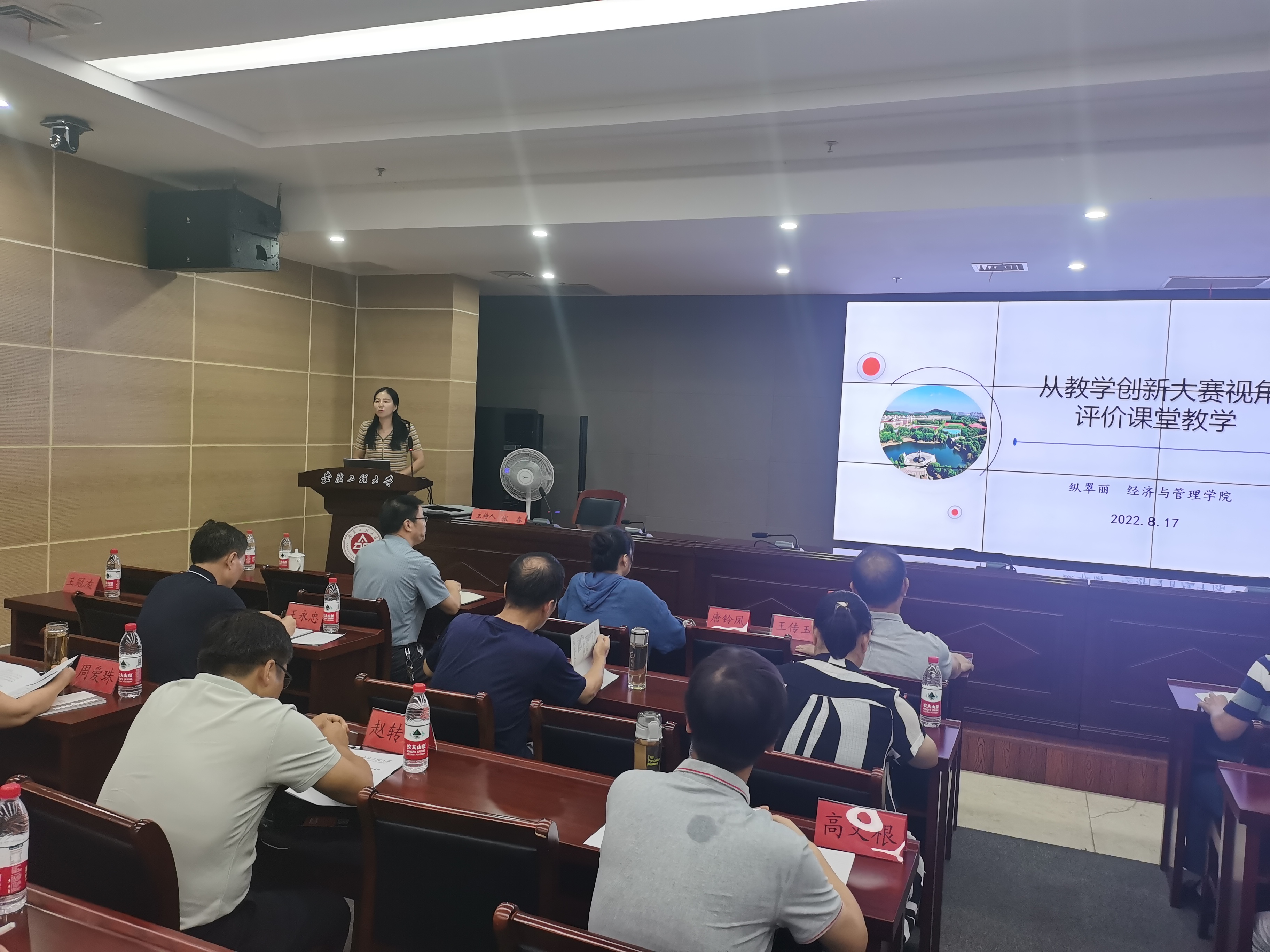 学校经济与管理学院纵翠丽副教授从教师教学创新大赛的视角出发,详细介绍了教学创新大赛的背景以及教学创新大赛方案,并解读了教学创新大赛的评价指标体系,总结出六个关键特征:教学创新、学生中心、课程思政、学科特色、技术应用、考核评价。